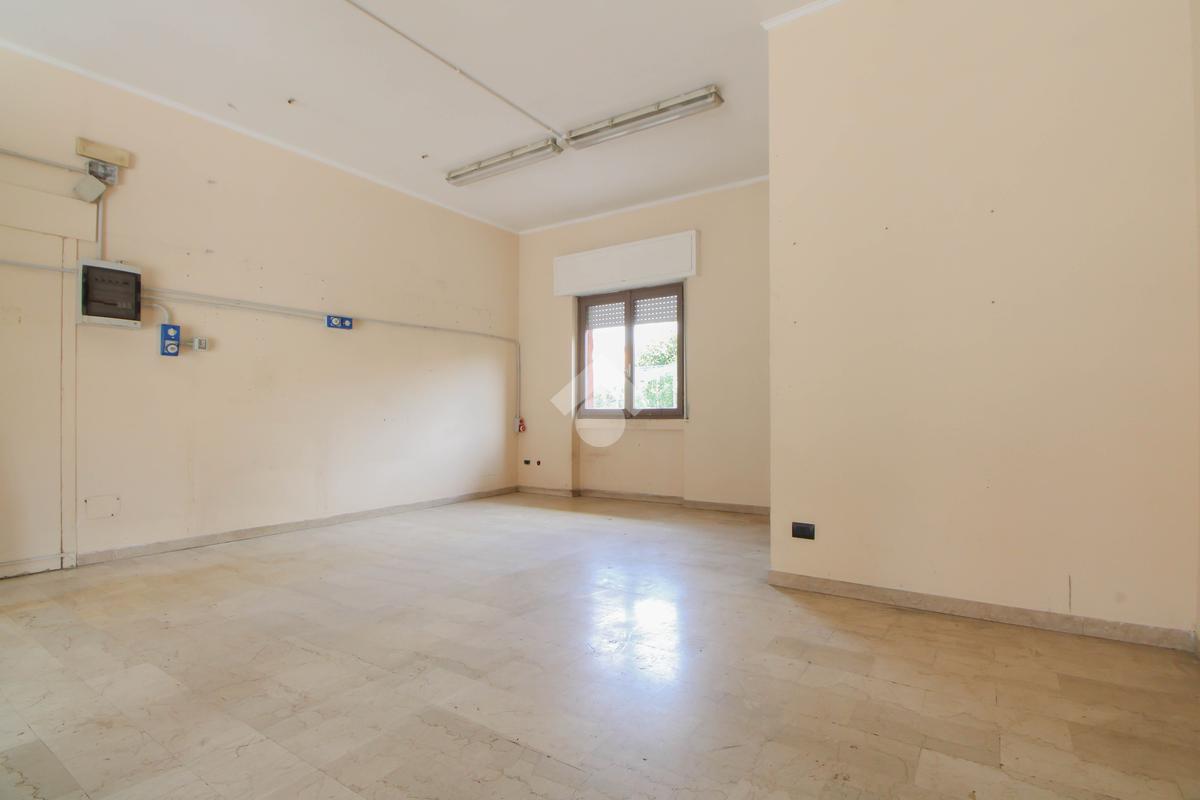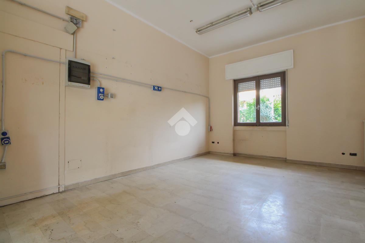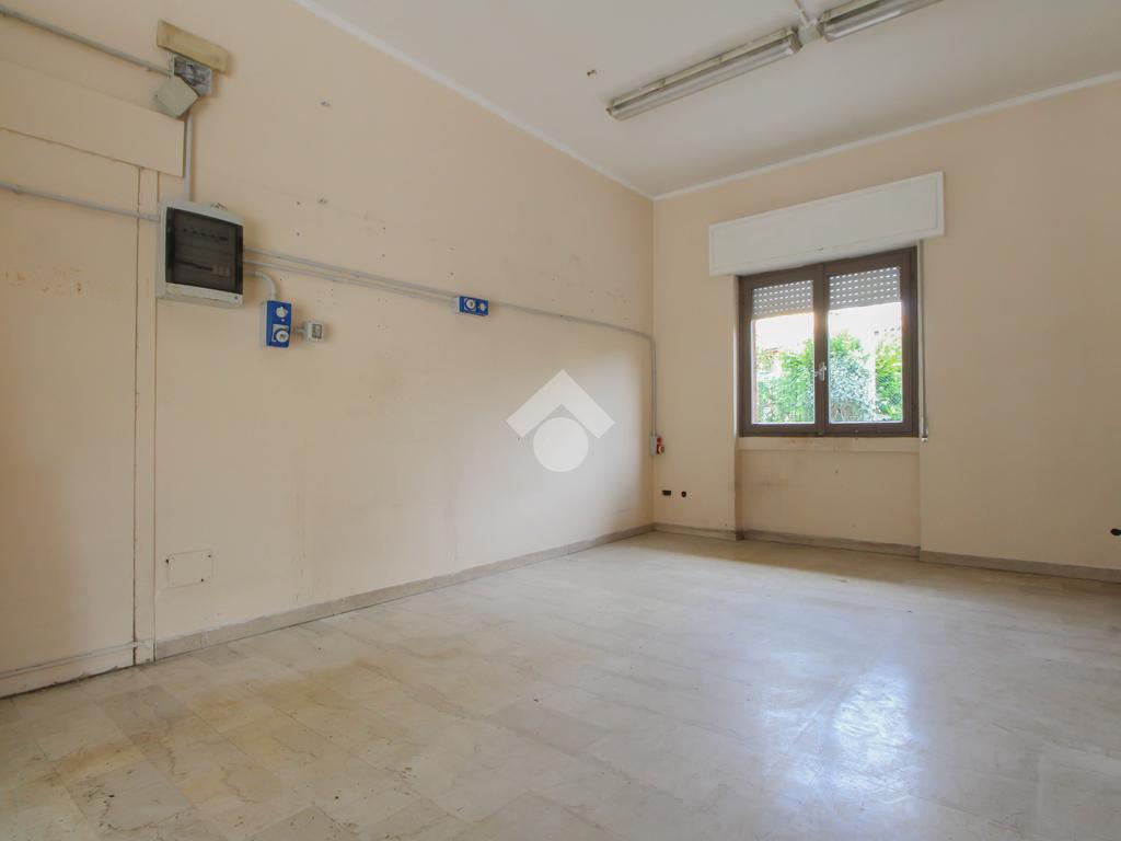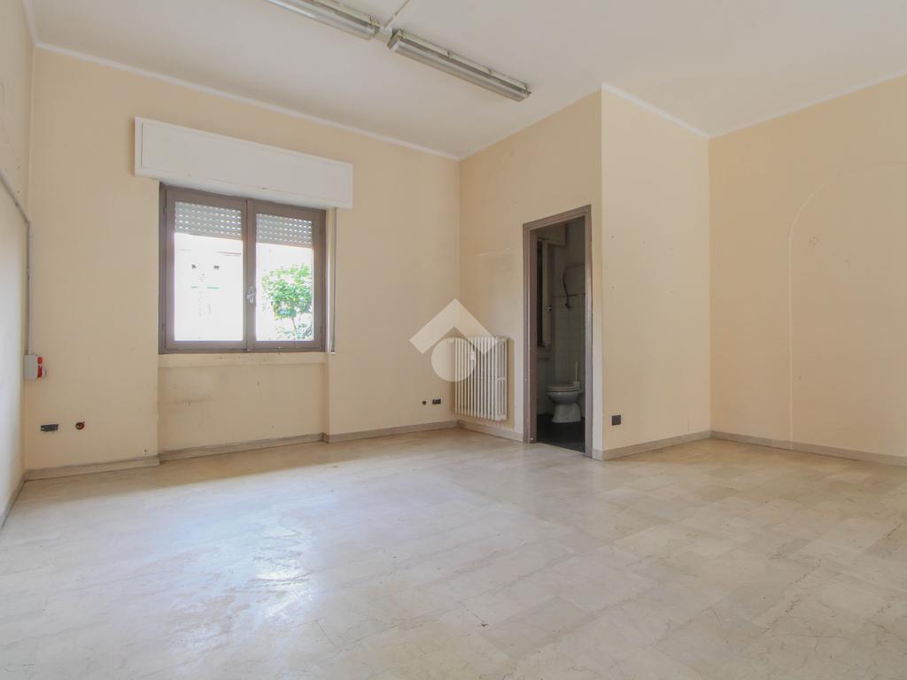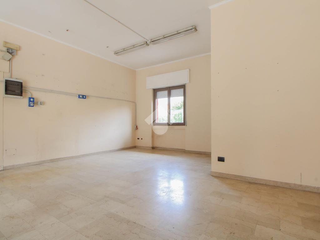 L’ufficio misura 45 metri quadrati ed è situato al piano terra di una palazzina che si sviluppa su quattro livelli. La soluzione è attualmente un open space ed è dotata di un servizio igienico finestrato. L'ambiente è luminoso grazie alla presenza di una vetrina. Il locale possiede l'impianto di riscaldamento centralizzato, l'impianto elettrico e quello di illuminazione. L'immobile, è servito da una saracinesca manuale e presenta un accesso a norma disabili.
