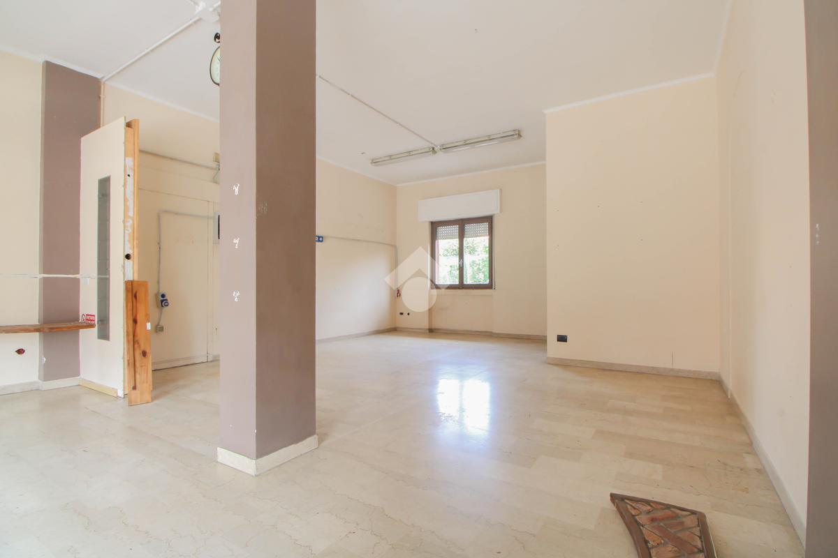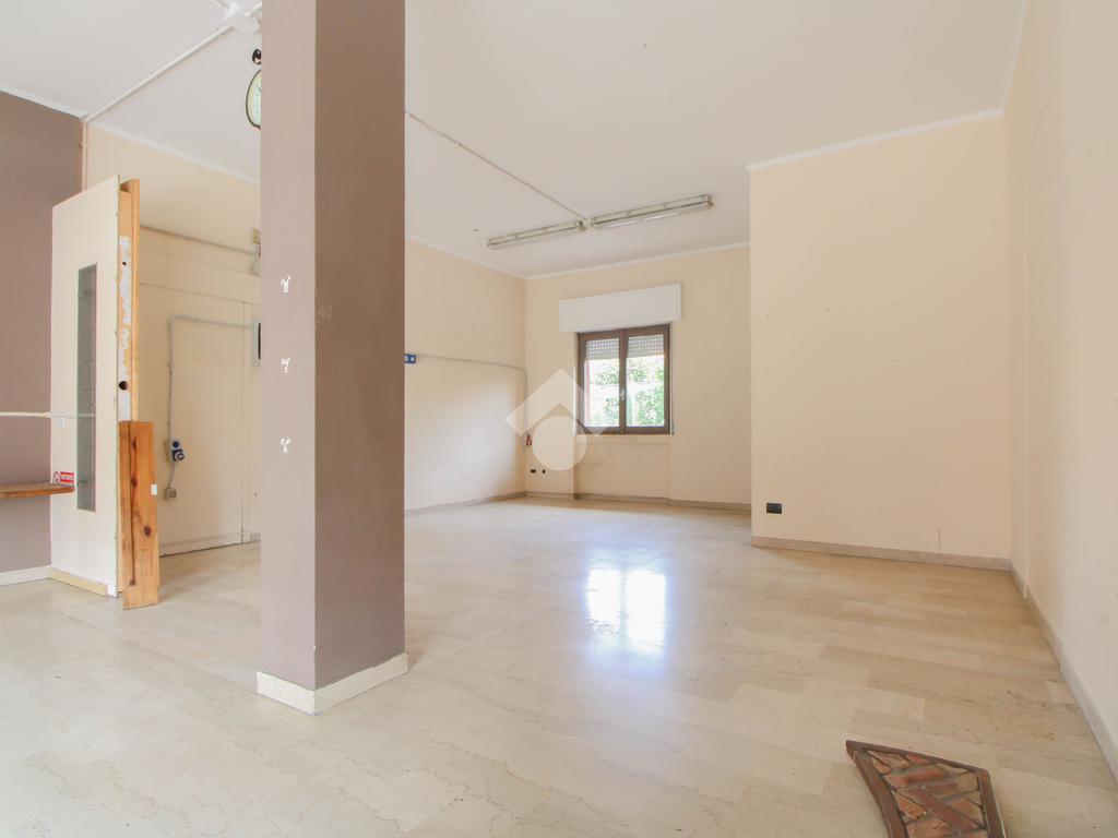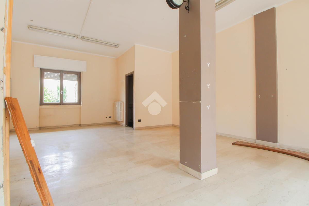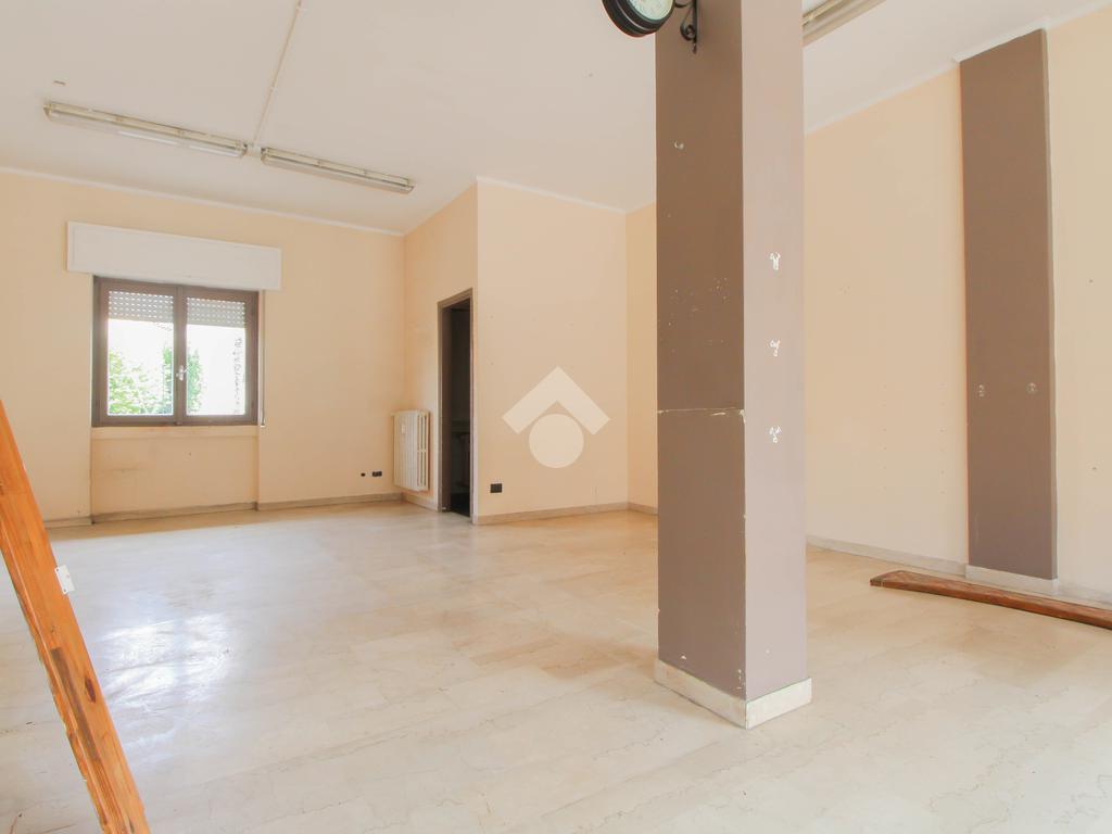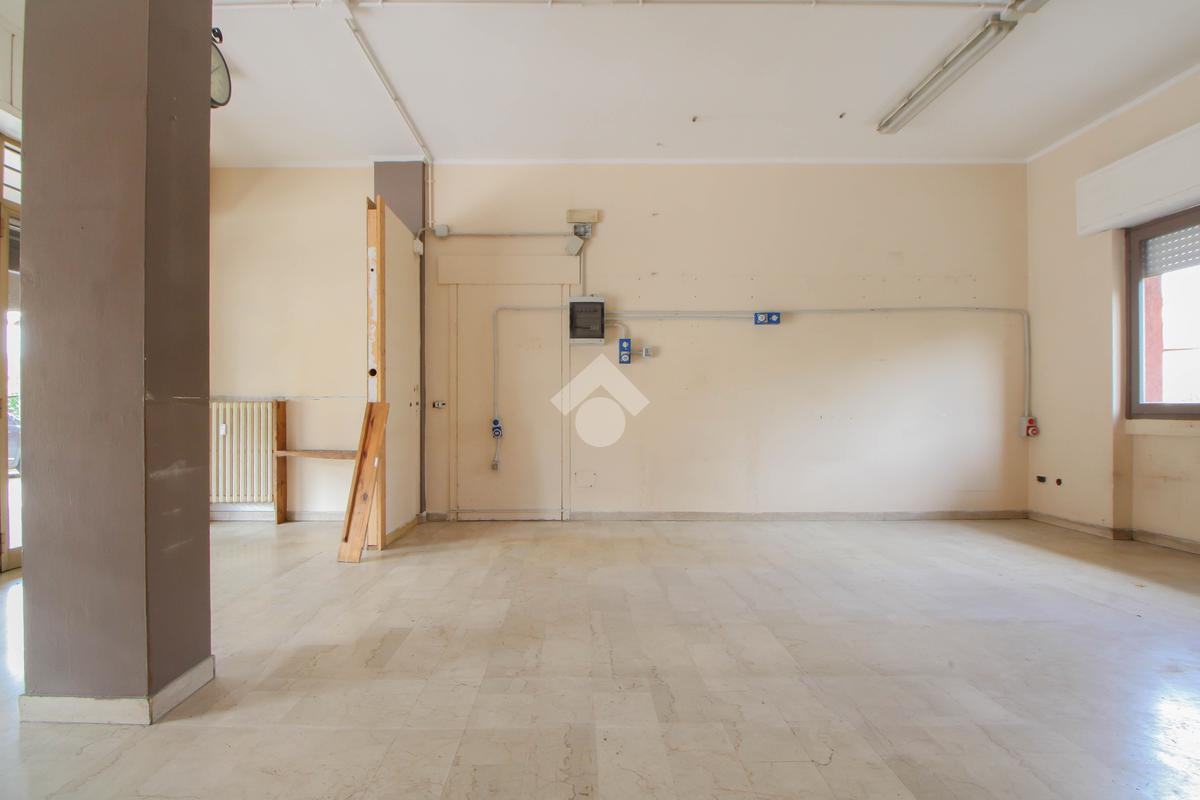 L’ufficio misura 45 metri quadrati ed è situato al piano terra di una palazzina che si sviluppa su quattro livelli. La soluzione è attualmente un open space ed è dotata di un servizio igienico finestrato. L'ambiente è luminoso grazie alla presenza di una vetrina. Il locale possiede l'impianto di riscaldamento centralizzato, l'impianto elettrico e quello di illuminazione. L'immobile, è servito da una saracinesca manuale e presenta un accesso a norma disabili.