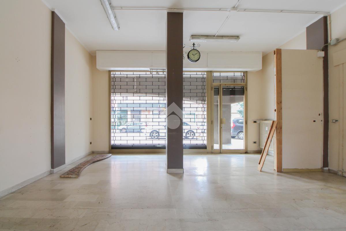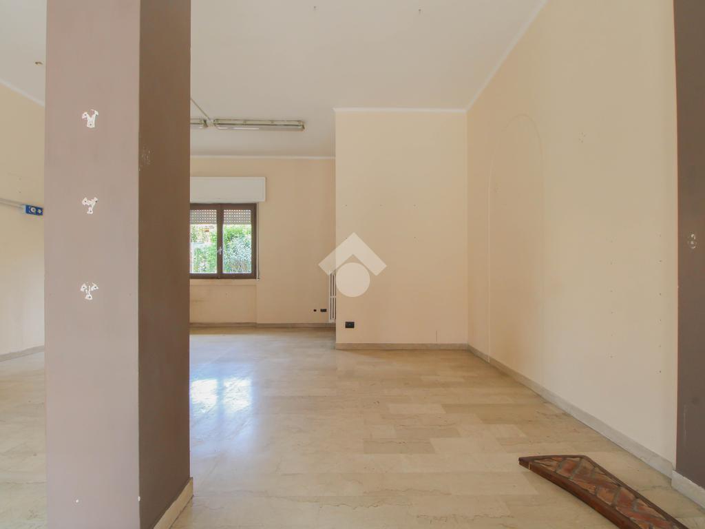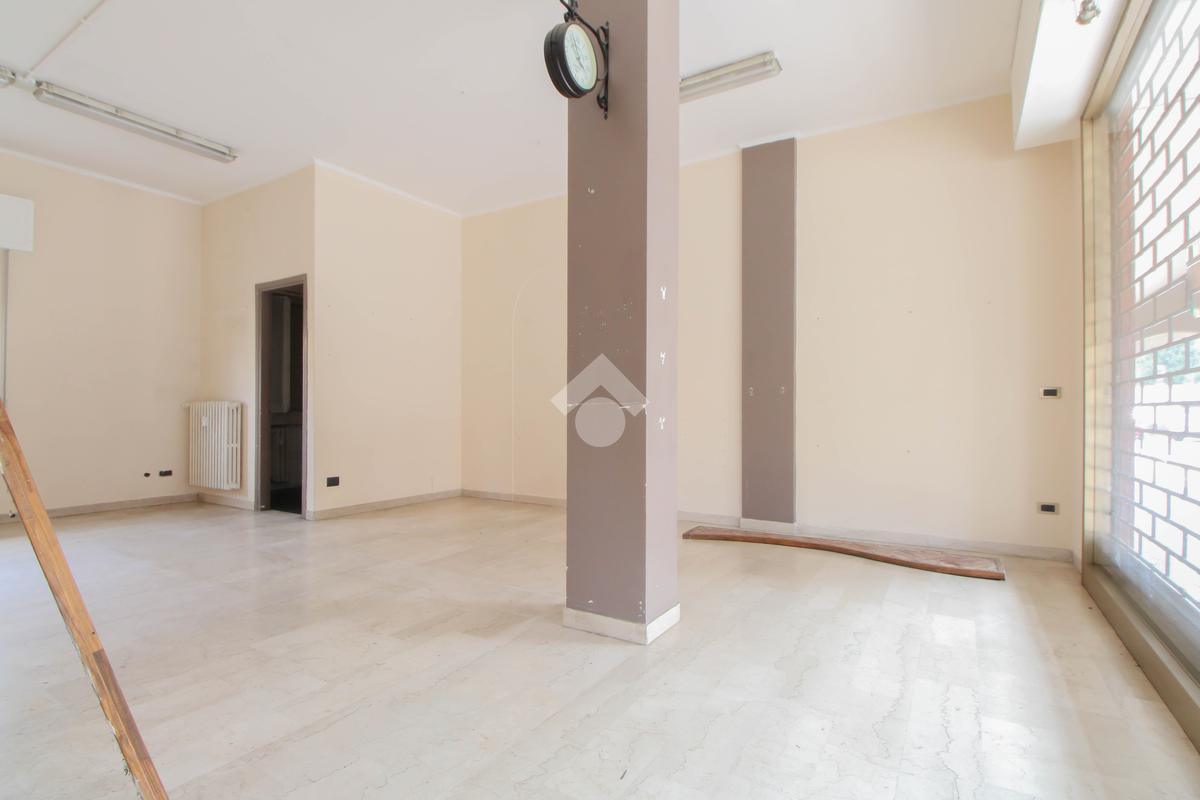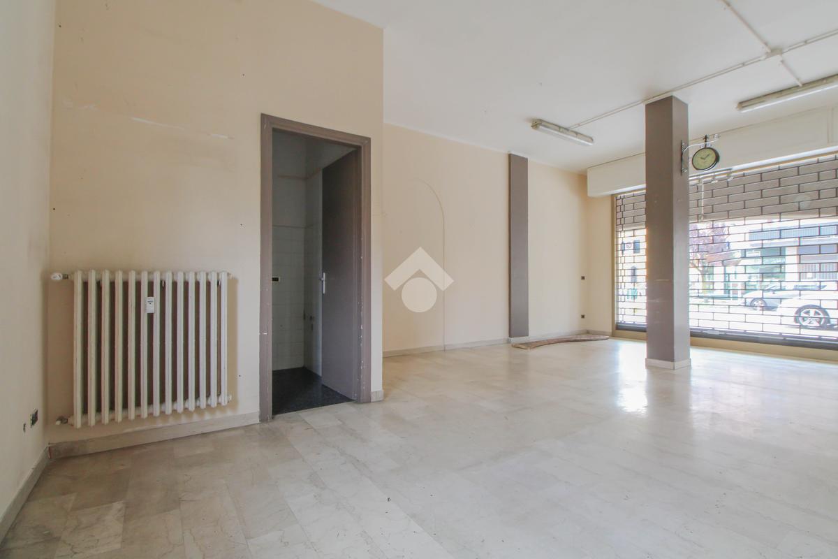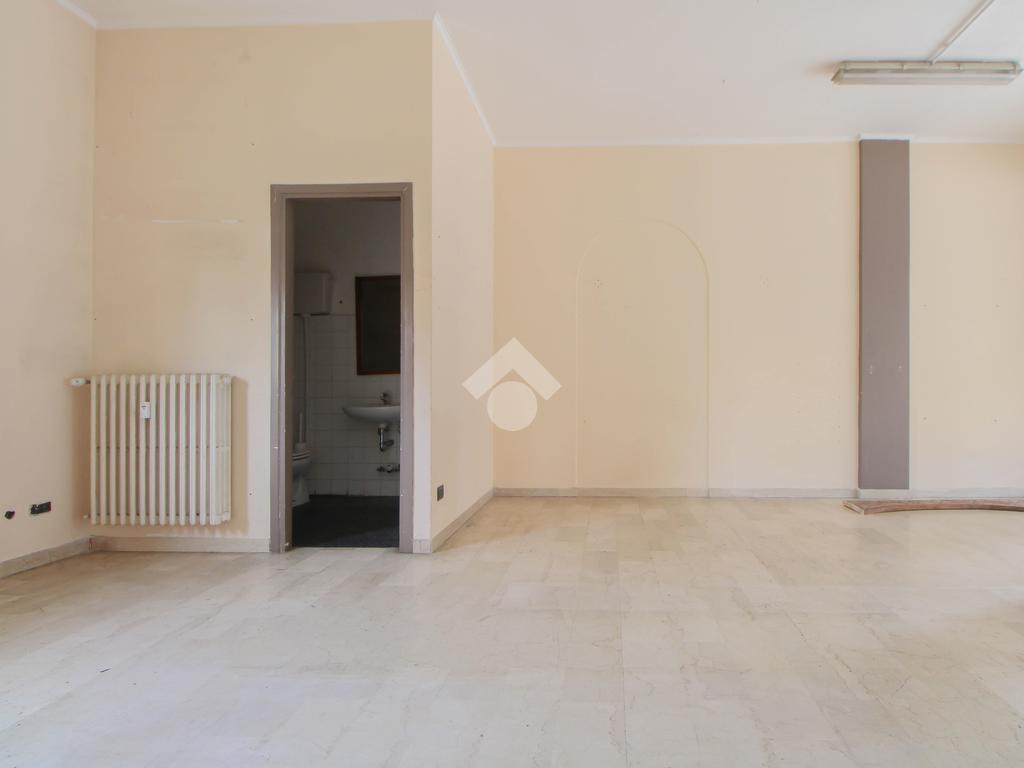 L’ufficio misura 45 metri quadrati ed è situato al piano terra di una palazzina che si sviluppa su quattro livelli. La soluzione è attualmente un open space ed è dotata di un servizio igienico finestrato. L'ambiente è luminoso grazie alla presenza di una vetrina. Il locale possiede l'impianto di riscaldamento centralizzato, l'impianto elettrico e quello di illuminazione. L'immobile, è servito da una saracinesca manuale e presenta un accesso a norma disabili.