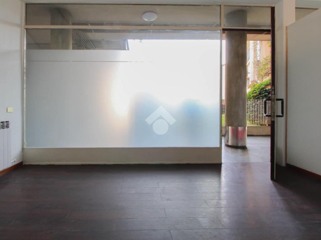 Proponiamo in locazione un ufficio con superficie di 90 metri quadrati, situato al piano terra di una struttura che si sviluppa su quattro livelli.