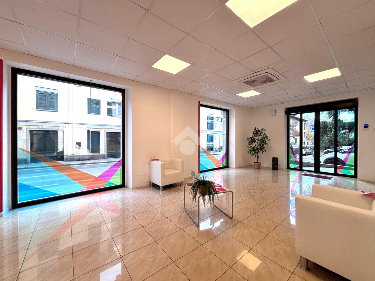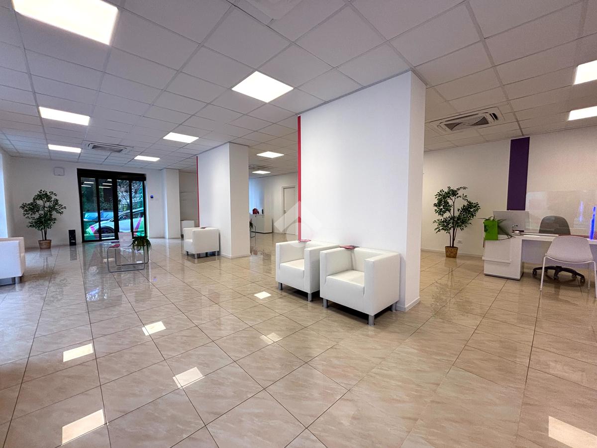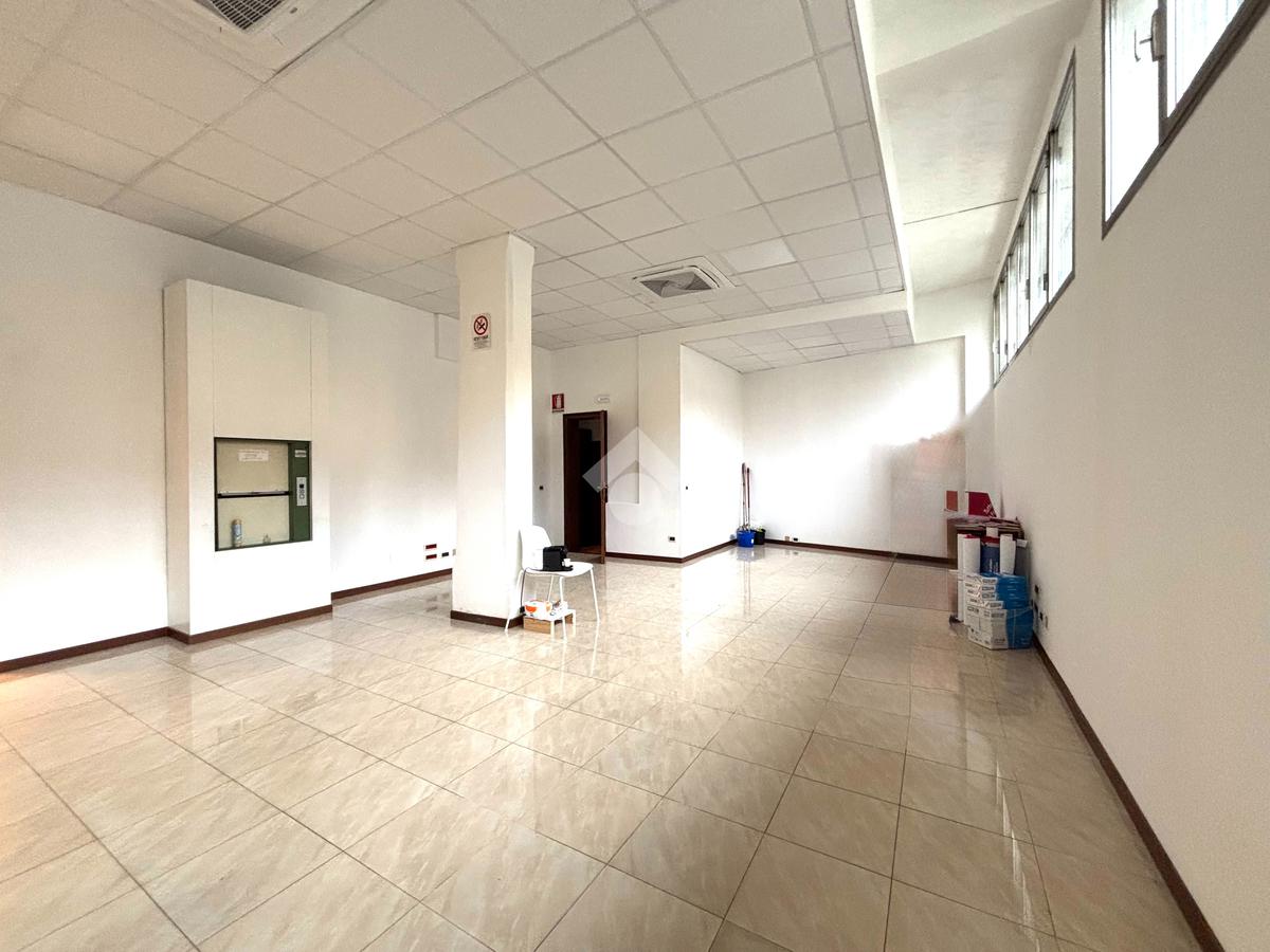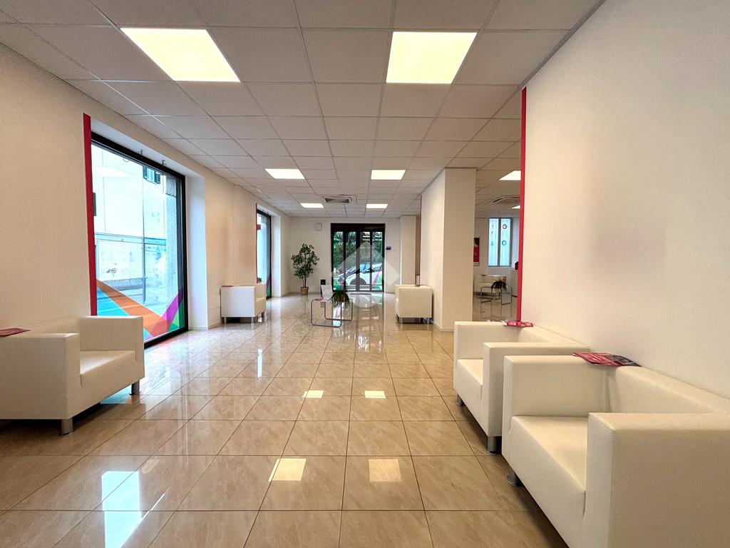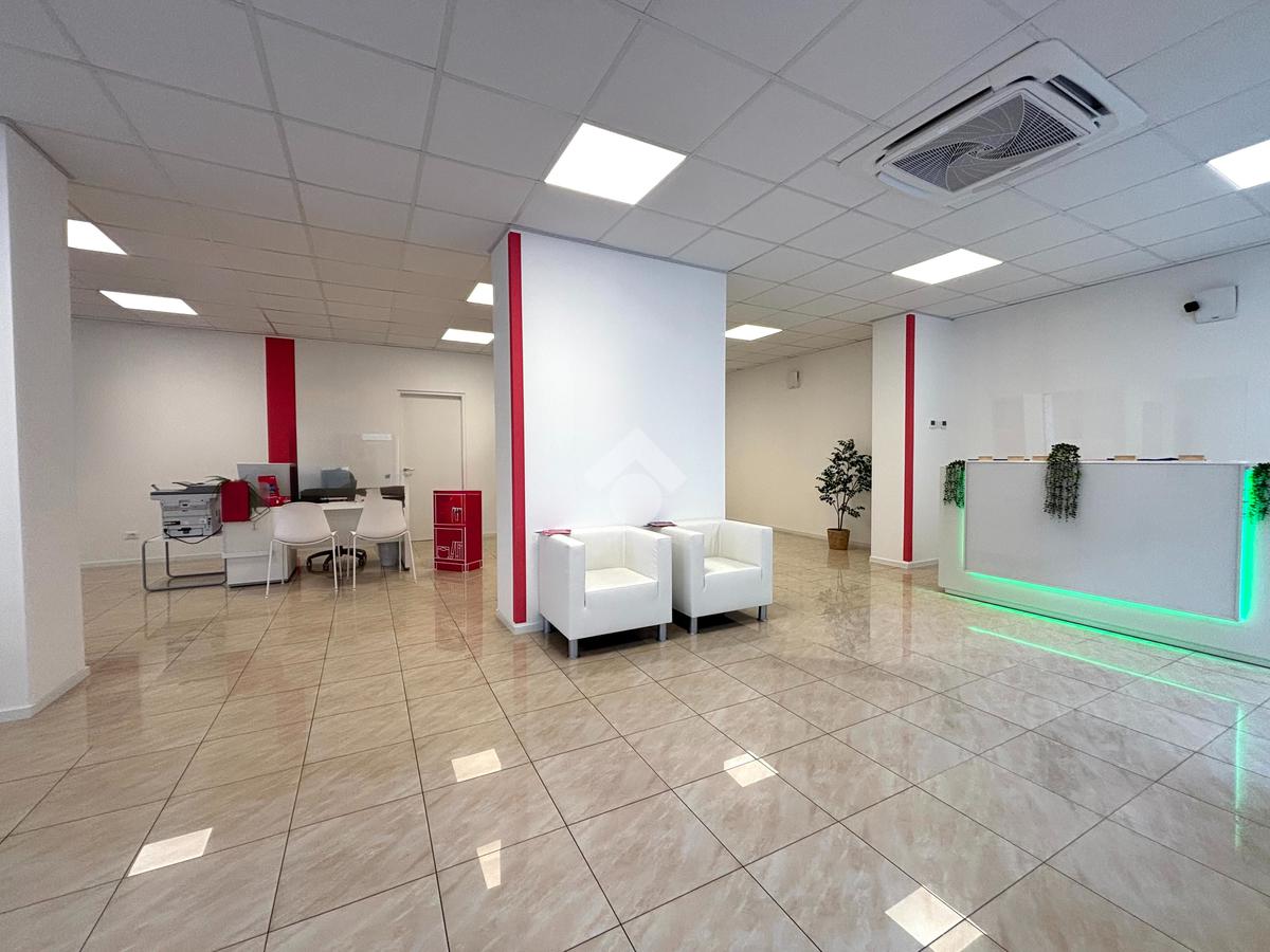 L'ufficio misura complessivamente 280 metri quadrati e si sviluppa su due piani di una palazzina di quattro livelli. Al piano terra, la soluzione è suddivisa in due ambienti: un open space di circa 115 metri quadrati e un locale retrostante di circa 55 metri quadrati. Il piano seminterrato ospita invece un magazzino di 110 metri quadrati. L’immobile, controsoffittato e cablato, dispone di un servizio igienico con antibagno al piano terra e risulta luminoso grazie alla presenza di quattro vetrine. La struttura è servita dall’impianto di riscaldamento e condizionamento autonomo, dall’impianto elettrico e da quello di illuminazione. L’ambiente presenta una posizione ad angolo con doppio ingresso a norma disabili ed è accessibile tramite una saracinesca automatica. La palazzina ha beneficiato nel 2021 di una ristrutturazione esterna, che ha interessato tetto e facciata.
