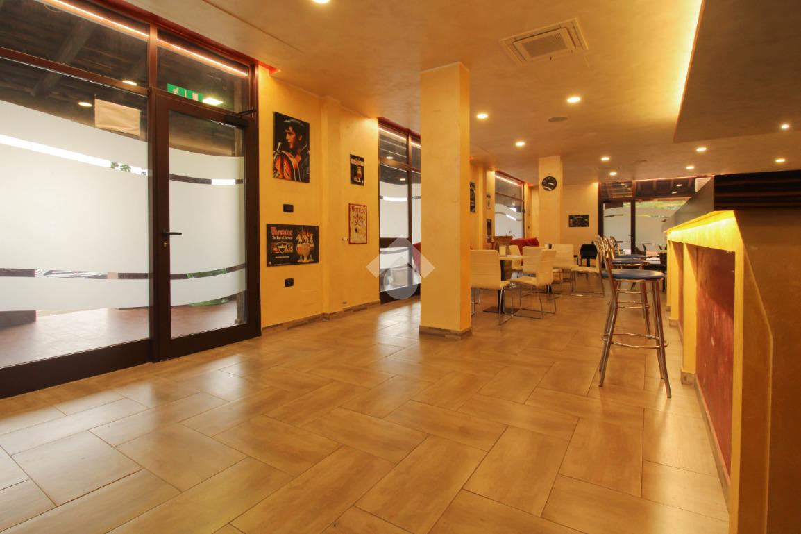 Il negozio misura 200 metri quadrati e si estende al piano terra di una palazzina che si sviluppa su due livelli. La soluzione, controsoffittata, è attualmente divisa in due locali ed è munita di tre servizi igienici con antibagno. Il negozio, cablato, è servito dall’impianto di riscaldamento e condizionamento autonomo, dall’impianto elettrico e da quello di illuminazione. L'ambiente è luminoso grazie alla presenza di quattro vetrine e presenta una posizione ad angolo con doppio ingresso a norma disabili e accesso tramite saracinesca automatica. La soluzione è servita dal sistema di allarme, dal sistema di videosorveglianza e da quello di ventilazione meccanica. Sono presenti circa 250 metri quadrati di area esterna, di cui 190 metri quadrati coperti da porticato. Inoltre, l’immobile prevede la possibilità di installare la canna fumaria.
