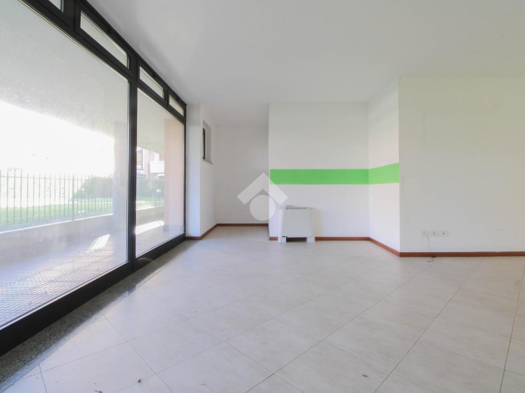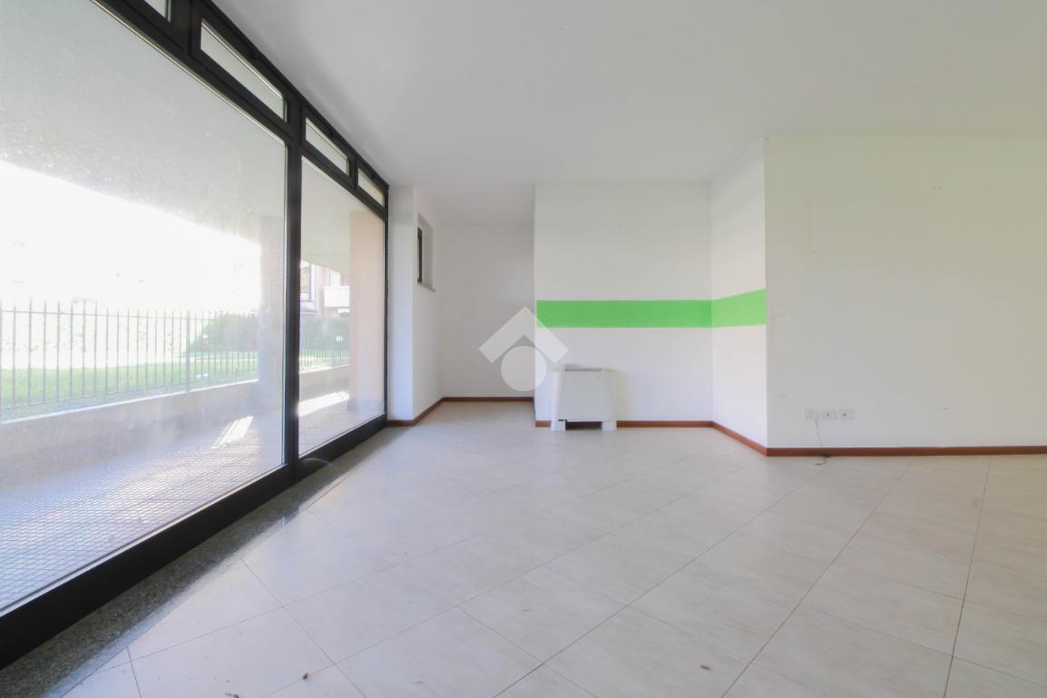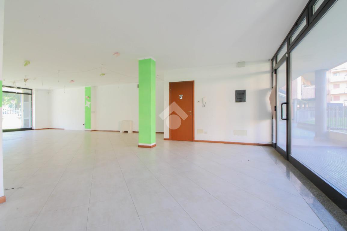 Il negozio misura 105 metri quadrati ed è situato al piano terra di una palazzina che si sviluppa su cinque livelli. La soluzione è attualmente un open space ed è dotata di un servizio igienico finestrato con antibagno. L'ambiente è particolarmente luminoso grazie alla presenza di due grandi vetrine. Il locale possiede l'impianto di riscaldamento e condizionamento autonomo ad aria, l'impianto elettrico e quello di illuminazione. L'immobile, controsoffittato, è servito dalla canna fumaria, da un citofono ed è cablato. Il negozio presenta un doppio ingresso a norma disabili.