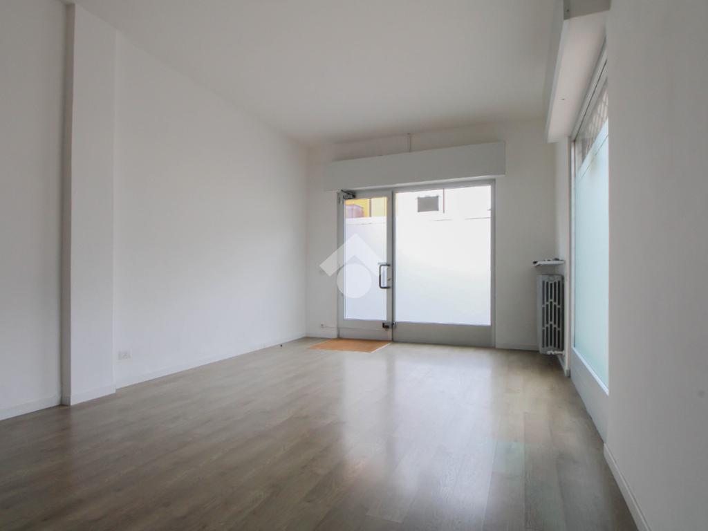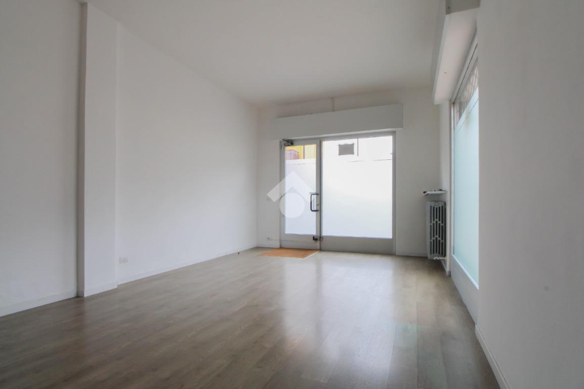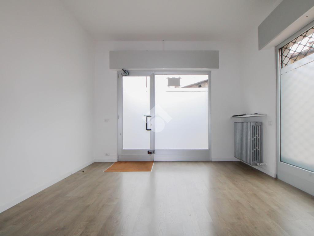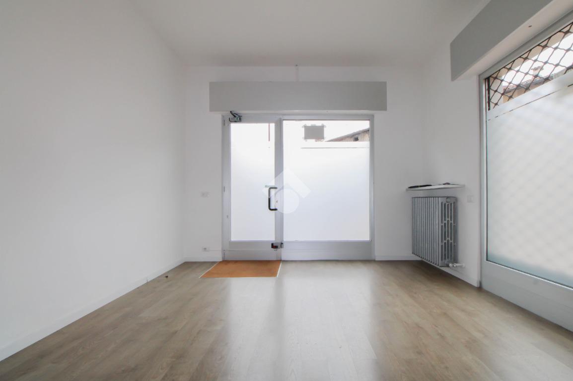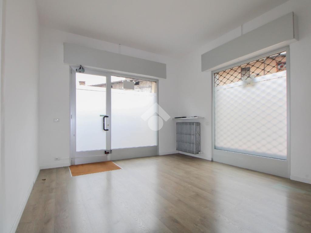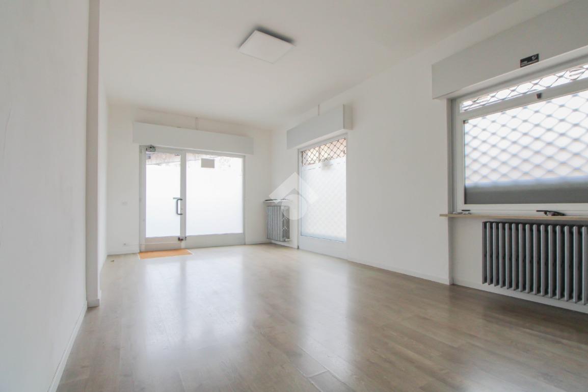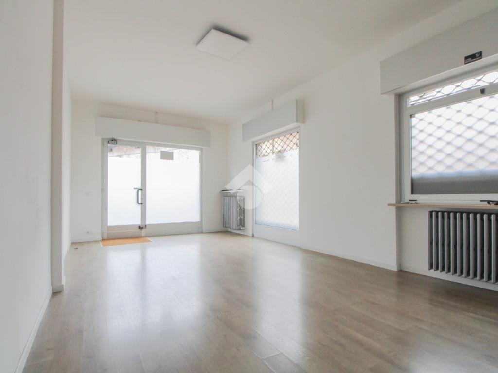 La soluzione ha una superficie di circa 55 metri quadrati disposti su di un unico livello al piano terra. L'immobile è attualmente un open-space con ripostiglio ed è dotato di un servizio igienico privato, finestrato e con antibagno. L'ambiente risulta particolarmente luminoso grazie alla presenza di due vetrine antisfondamento. Sono installati l'impianto di riscaldamento autonomo, l'impianto elettrico e quello di illuminazione. Il negozio, cablato, presenta una posizione ad angolo con doppio ingresso a norma disabili, tramite una saracinesca manuale e una porta tagliafuoco.