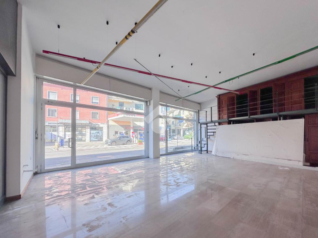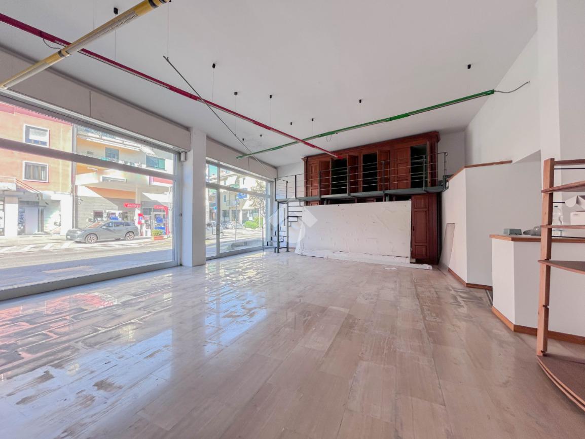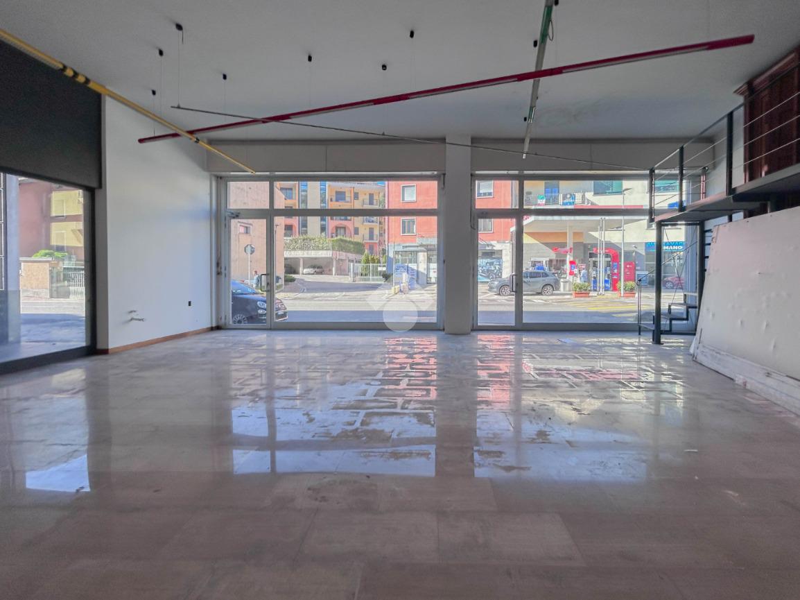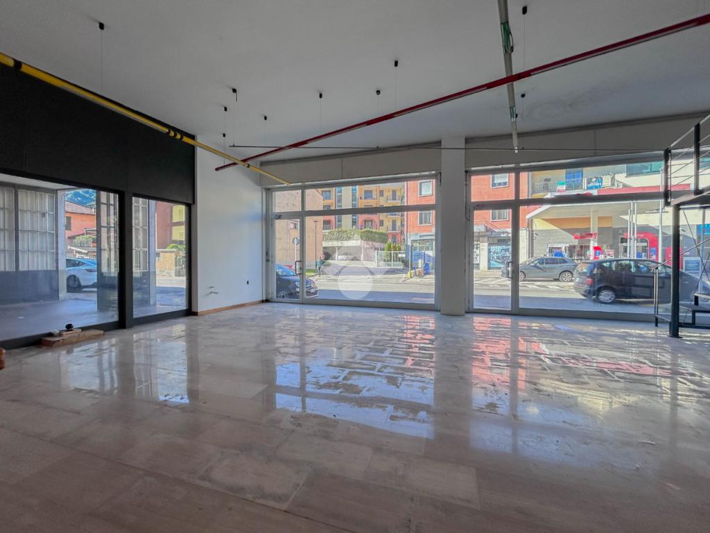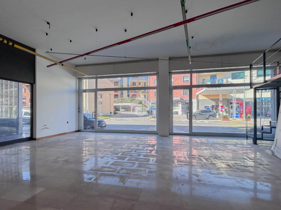 L’area espositiva è attualmente divisa in due locali ed è dotata di due servizi igienici con antibagno, di cui uno a norma disabili, e risulta ben illuminata grazie alla presenza di tre grandi vetrine. La soluzione è servita da una posizione ad angolo con doppio ingresso a norma disabili e prevede la possibilità di installare la canna fumaria.