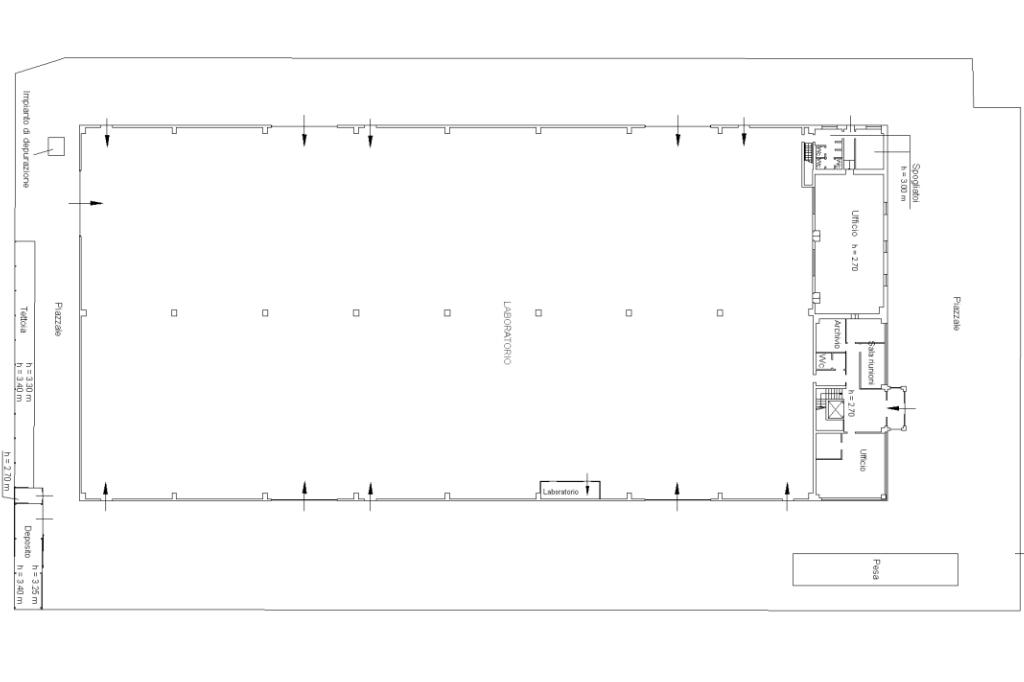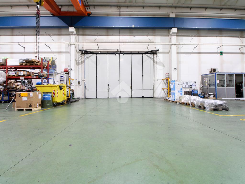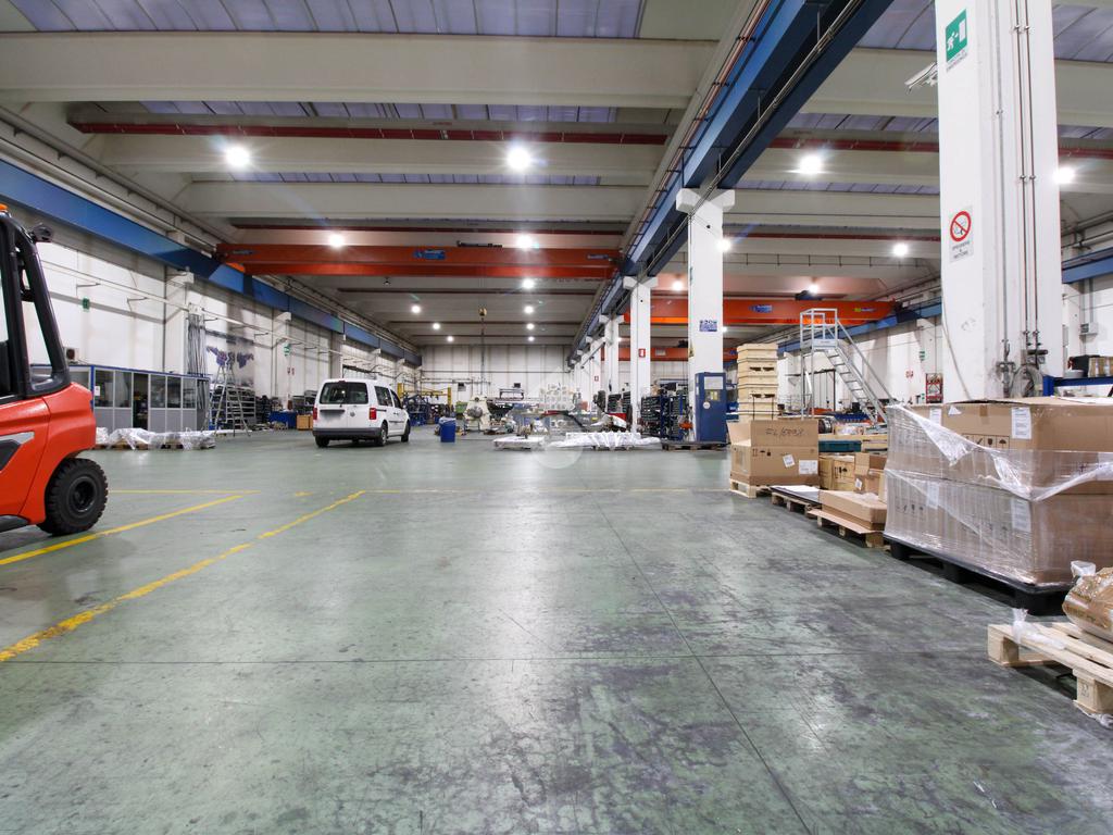 Il capannone misura 3.600 metri quadrati, ha un'altezza di 11,00 metri, con altezza sottotrave di 10,20 metri ed è accessibile tramite cinque portoni alti 5,80 metri. L'immobile si sviluppa lungo due diverse campate, le quali nell'insieme misurano circa 42,50 metri in larghezza e circa 85,00 metri in lunghezza. La struttura è dotata dell'impianto di riscaldamento a irraggiamento, dell'impianto elettrico con sistema Blindosbarra e dell'impianto di illuminazione. La soluzione è fornita dell'impianto di allarme, di videosorveglianza, dall'anello antincendio a idranti e dall'impianto ad aria compressa con le calate su ogni pilastro. Inoltre, sono presenti quattro carroponti, con le seguenti portate: 10 tonnellate, 20 tonnellate, 25 tonnellate e 35 tonnellate. L'immobile è completo degli spogliatoi con servizi igienici e docce, per un totale di ulteriori 100 metri quadrati. All'interno del capannone è presente un soppalco portante di circa 120 metri quadri, sfruttabile come magazzino. Gli uffici si sviluppano su tre livelli: al piano terra troviamo 220 metri quadrati, mentre il piano primo e il secondo piano misurano 180 metri quadrati ciascuno. La parte direzionale, controsoffittata e munita di pavimento flottante, è servita dall'impianto di riscaldamento e condizionamento e ogni piano è completo di un servizio igienico. La proprietà è interamente recintata e possiede ulteriori 2.000 metri quadrati di area esterna esclusiva, alla quale si accede tramite un cancello con larghezza pari a 8,00 metri. Esternamente, è presente una pesa con portata di 100 tonnellate e una vasca di raccolta con capienza massima di 20.000 litri.