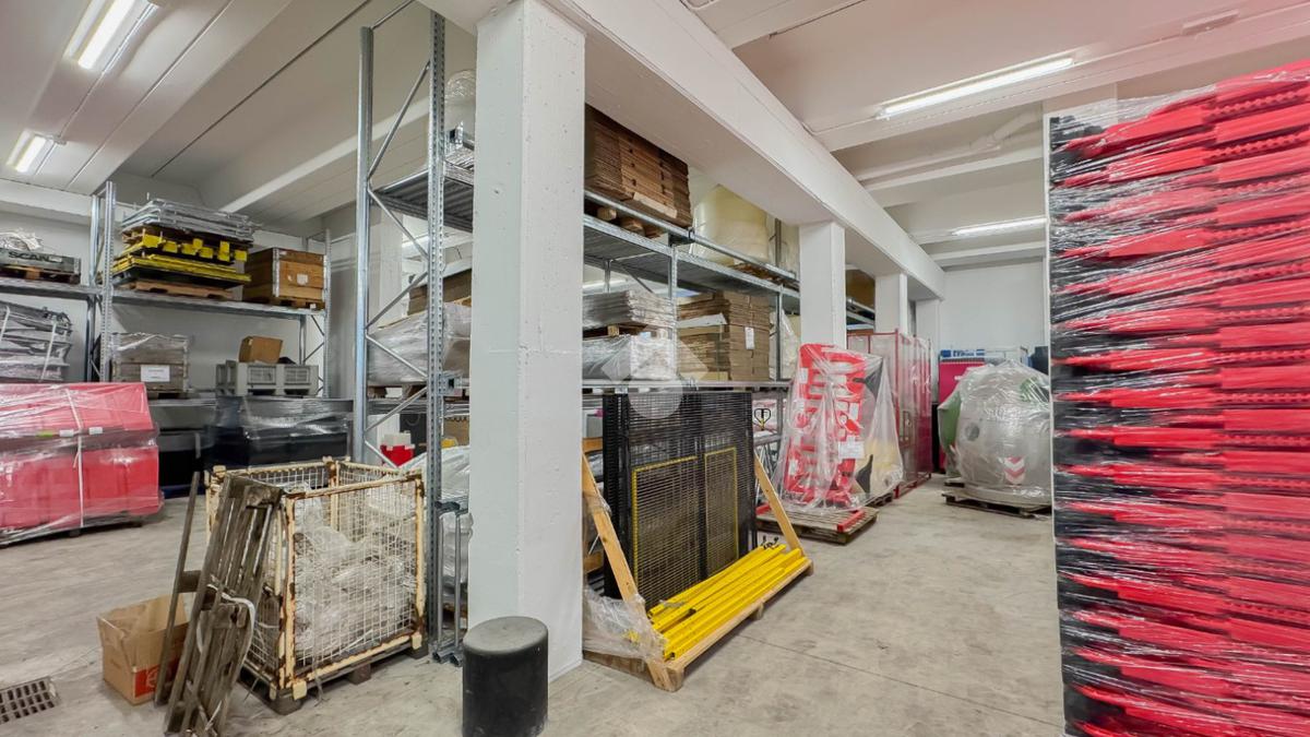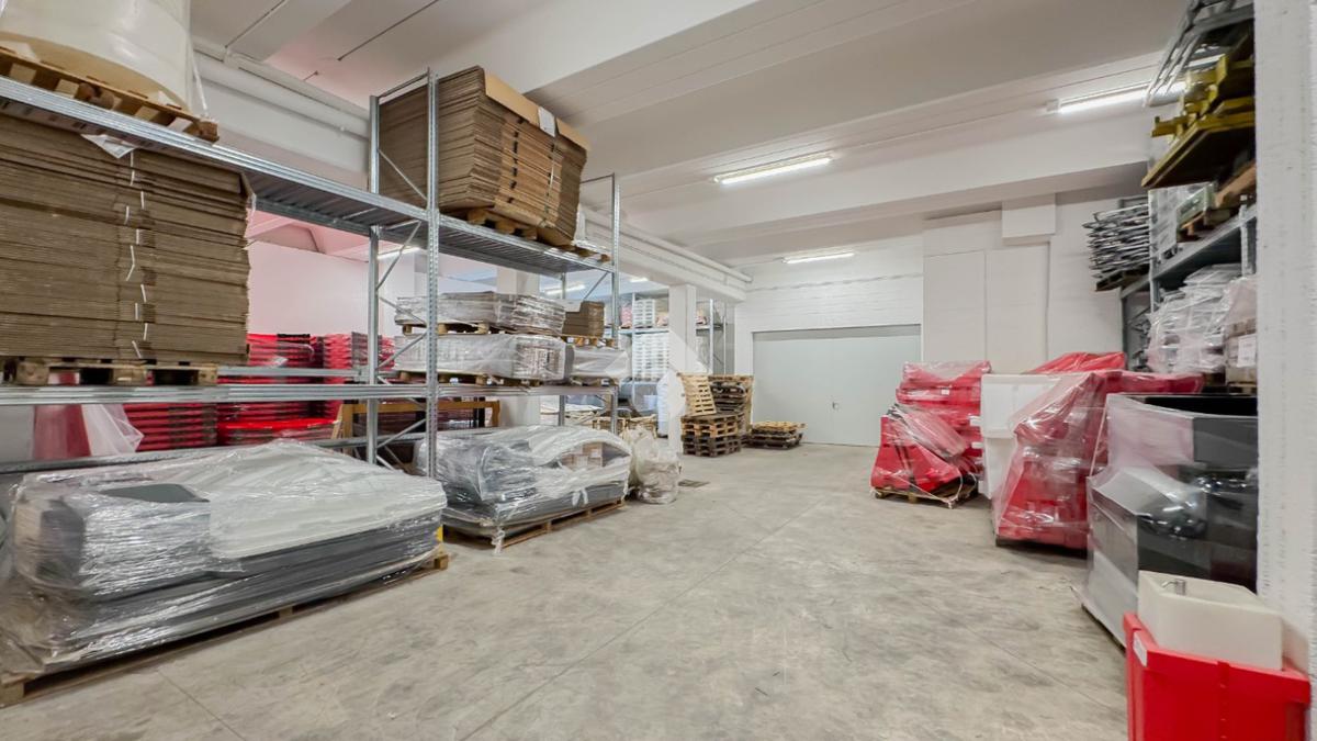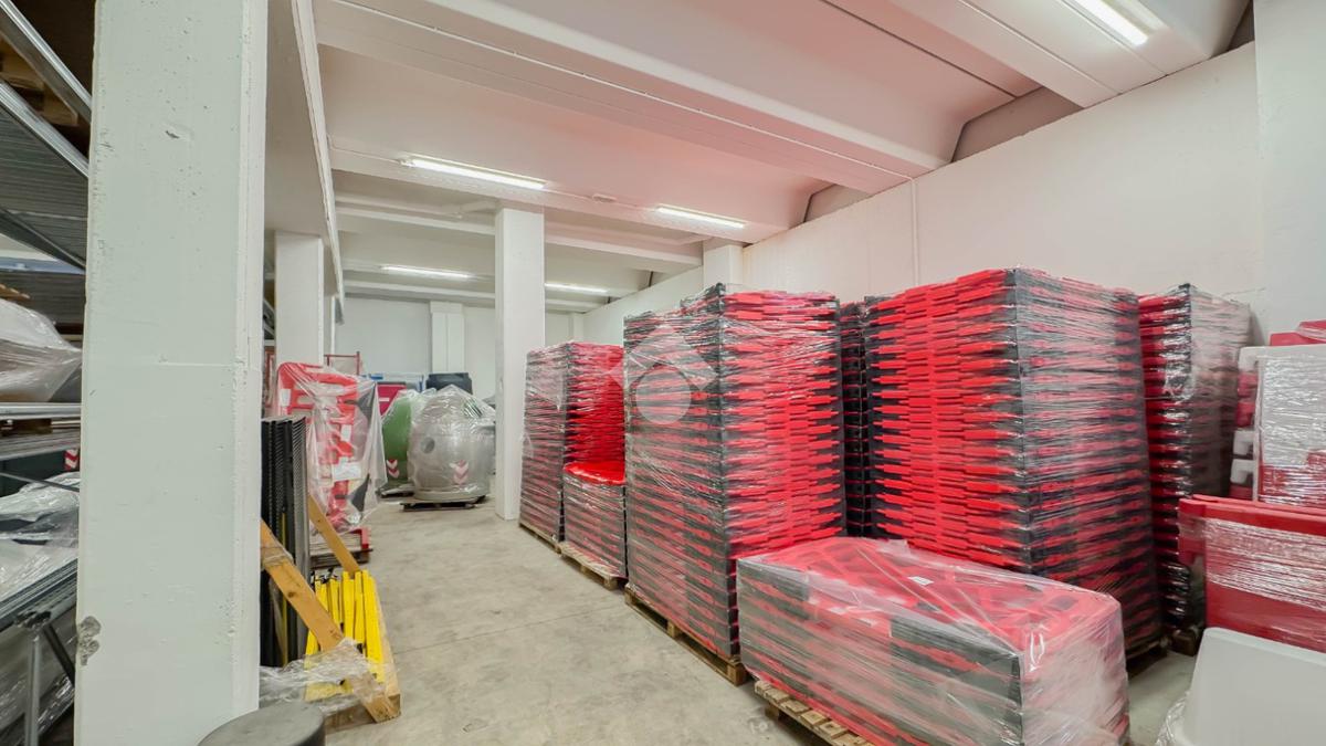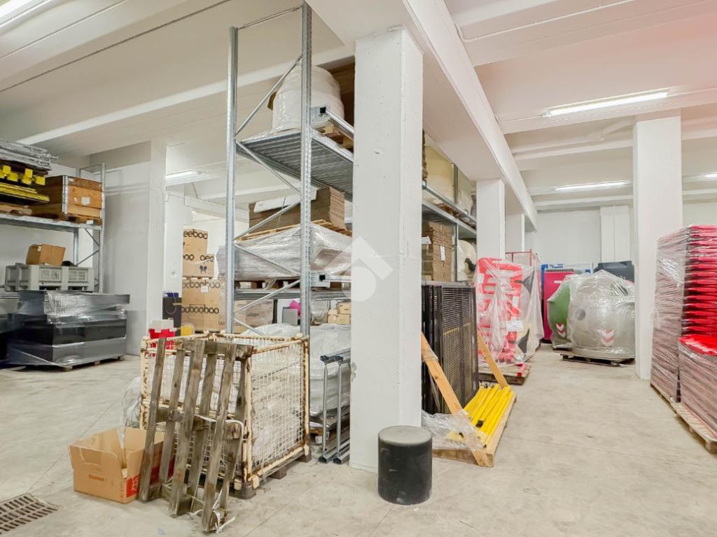 Il capannone, per un totale di circa 690 metri quadrati, si sviluppa al piano seminterrato di una struttura commerciale di due livelli ed è composto da due locali rispettivamente di 370 e 320 metri quadrati.