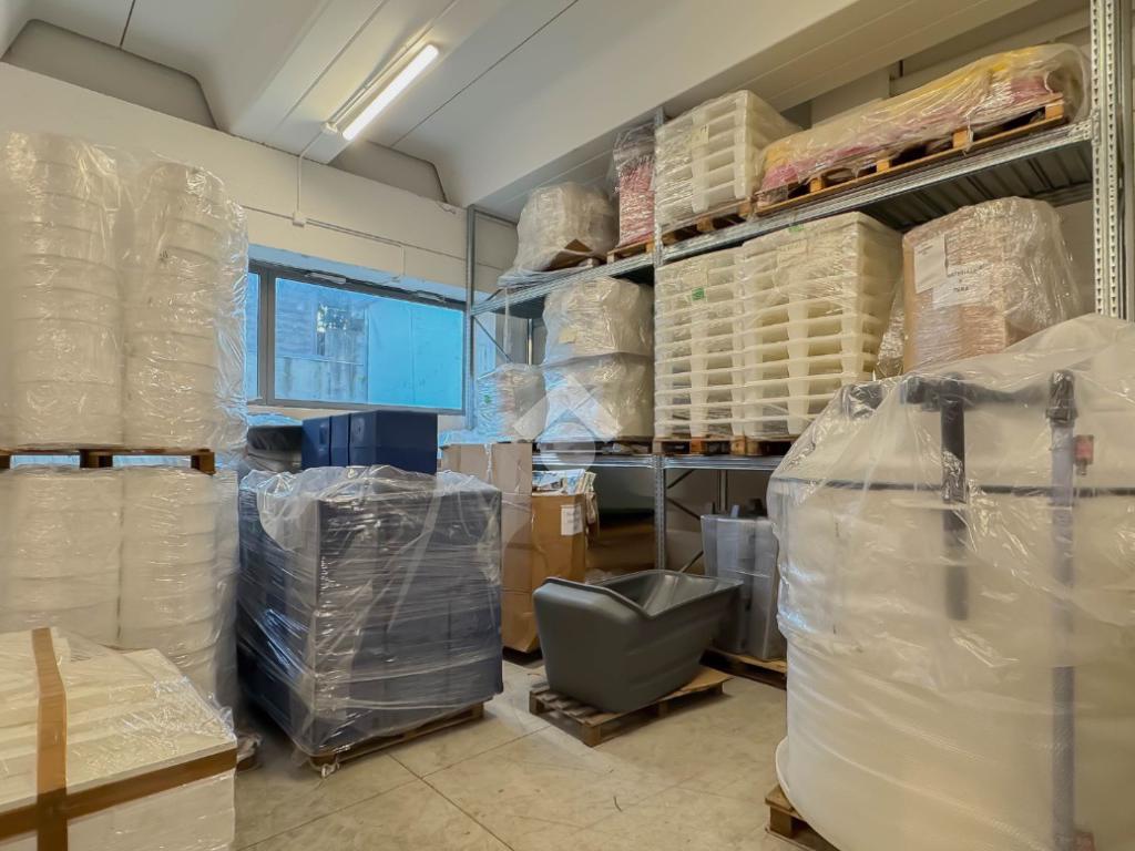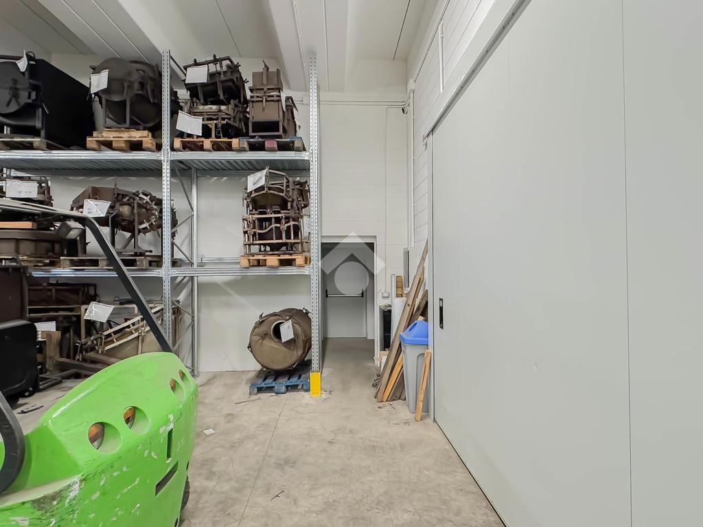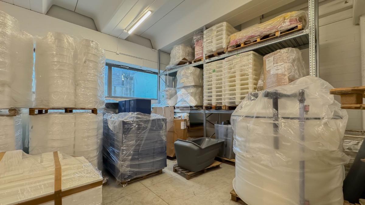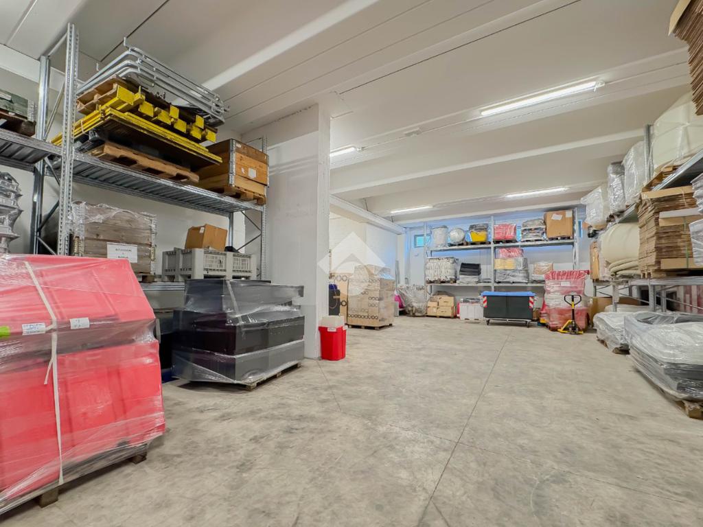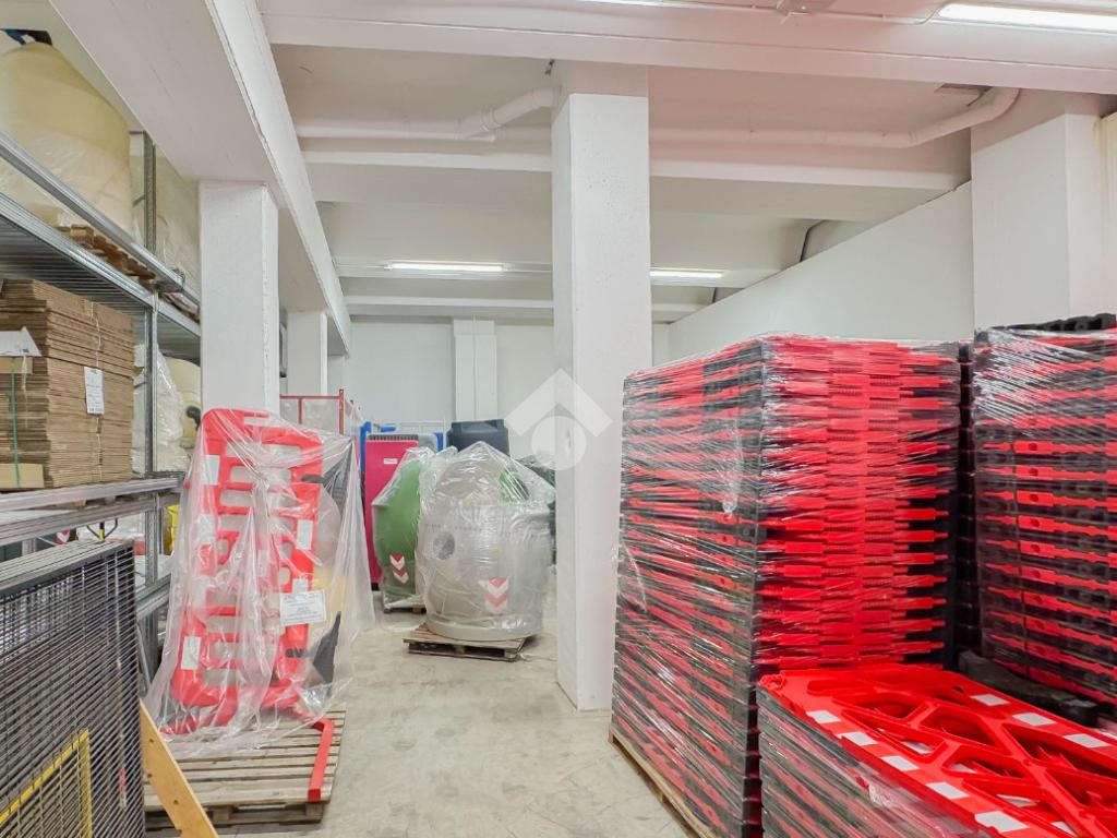 Il capannone, per un totale di circa 690 metri quadrati, si sviluppa al piano seminterrato di una struttura commerciale di due livelli ed è composto da due locali rispettivamente di 370 e 320 metri quadrati.