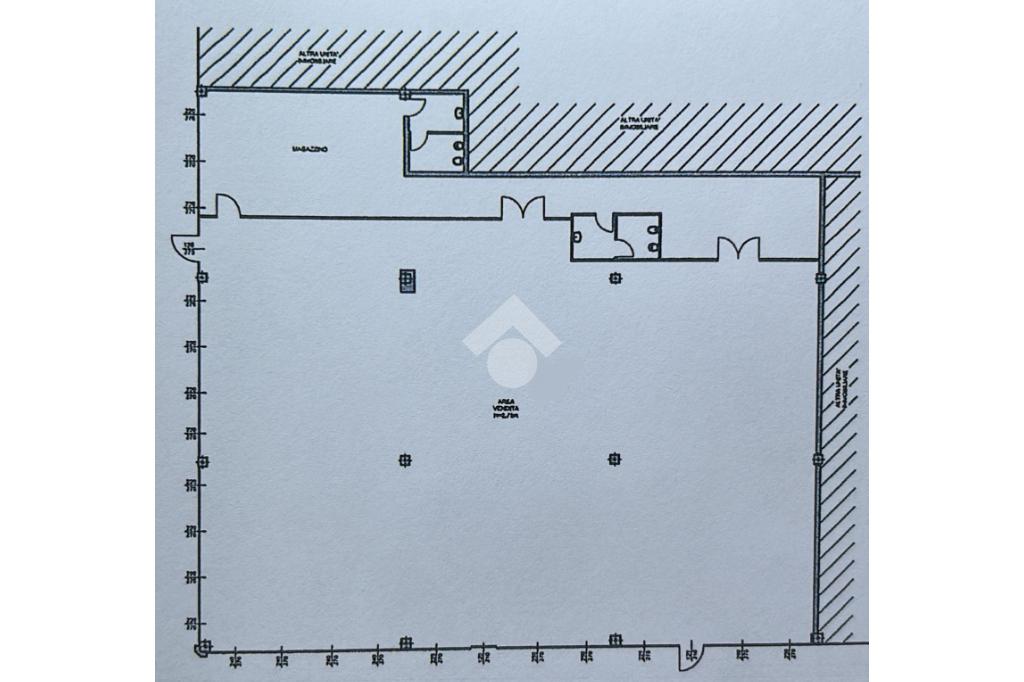Il negozio misura 730 metri quadrati ed è situato al piano terra di una palazzina commerciale. La soluzione è attualmente divisa in due locali, di cui un grande open space, ed è dotata di due servizi igienici a norma disabili. L'ambiente è particolarmente luminoso grazie alla presenza di venti grandi vetrine. La struttura, controsoffittata, possiede l’impianto di riscaldamento e condizionamento, l’impianto elettrico e quello di illuminazione. L’immobile è munito del sistema antincendio a pioggia con annessi sprinkler, del sistema di allarme e videosorveglianza. Inoltre, è servito dall’impianto di ventilazione meccanica, è cablato e presenta posizione ad angolo e doppio ingresso.