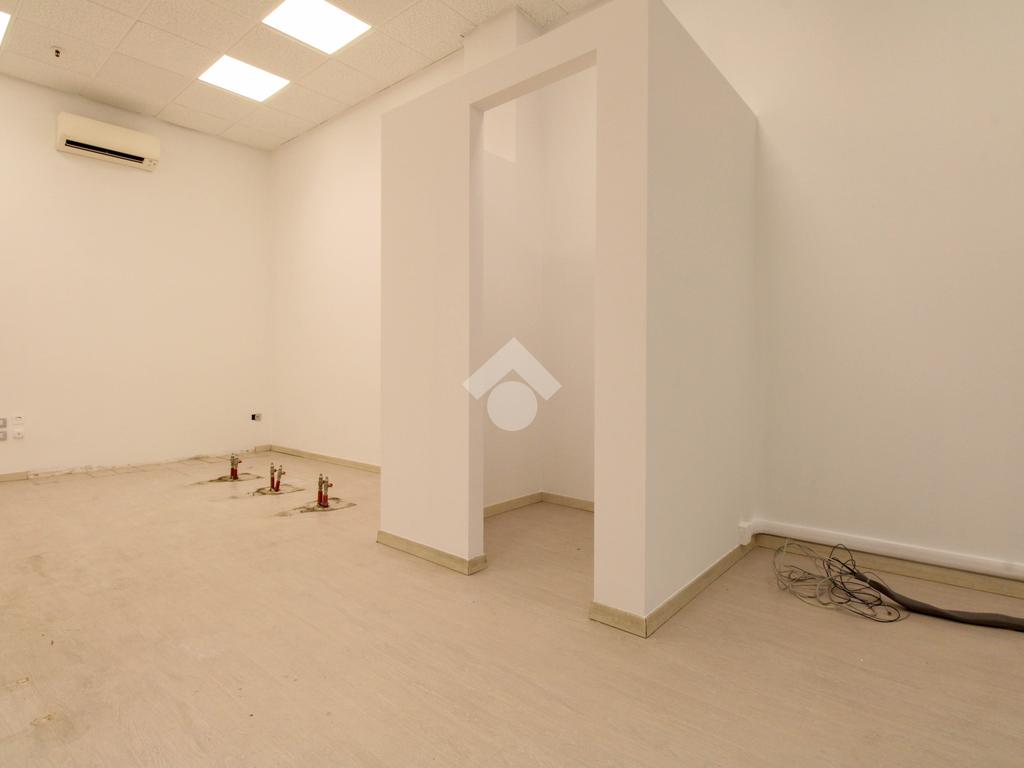 L'ufficio misura 45 metri quadrati ed è situato al piano terra di una struttura commerciale. La soluzione è attualmente un open space ed è dotata di un servizio igienico, con antibagno. L'ambiente è particolarmente luminoso grazie alla presenza di due grandi vetrine. La struttura possiede l’impianto di riscaldamento e condizionamento, l’impianto elettrico e quello di illuminazione. L’immobile, controsoffittato, è servito dal sistema antincendio a pioggia con annessi rilevatori.