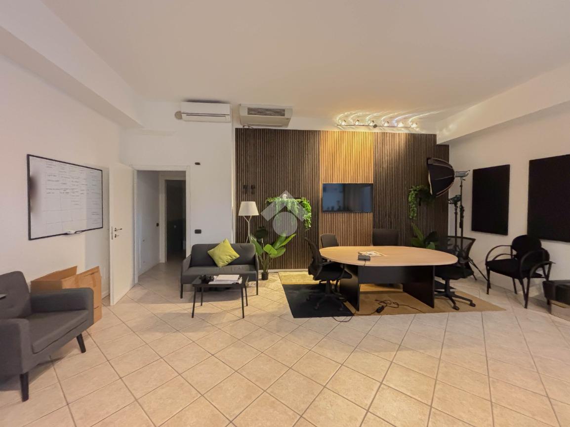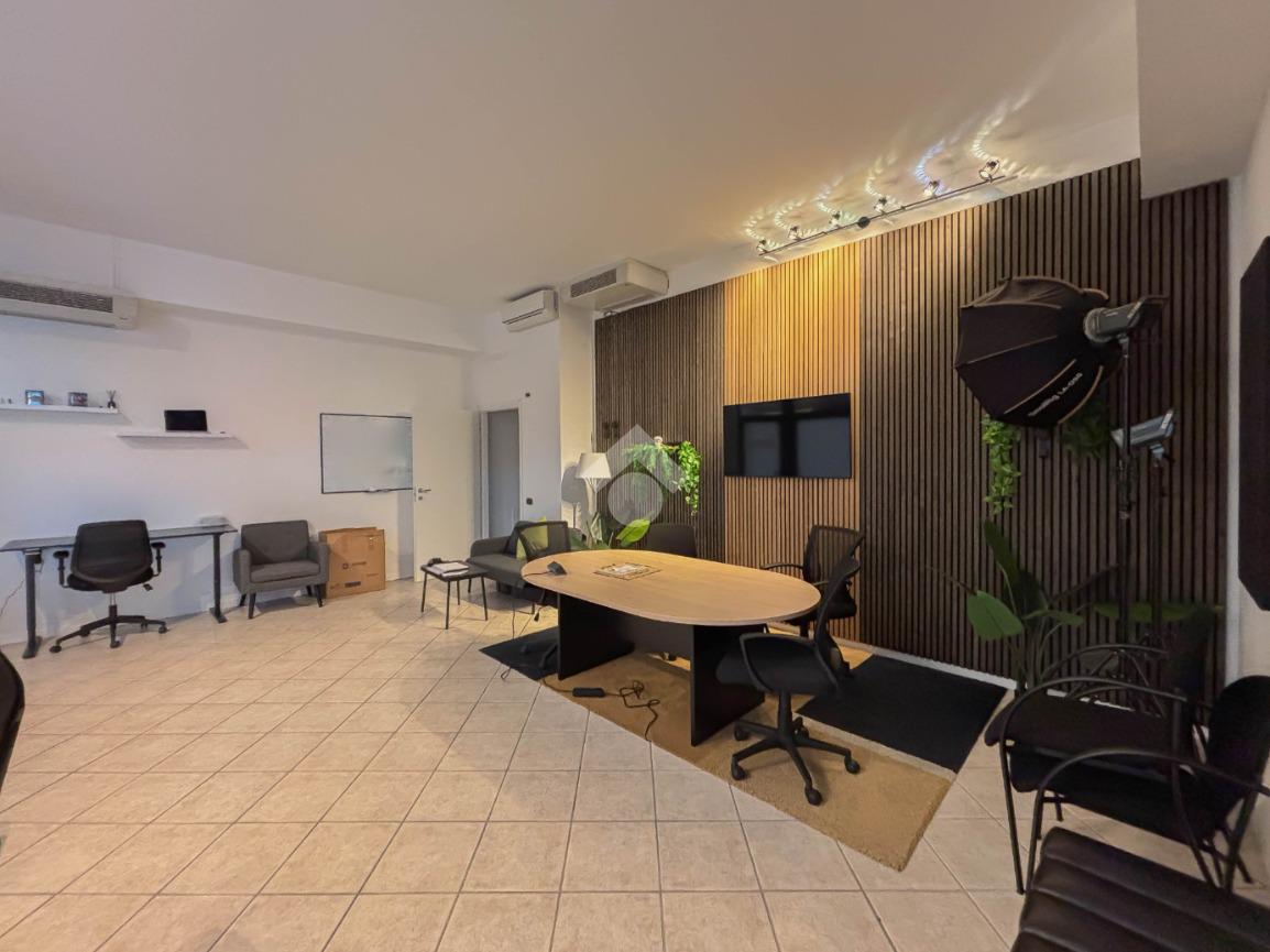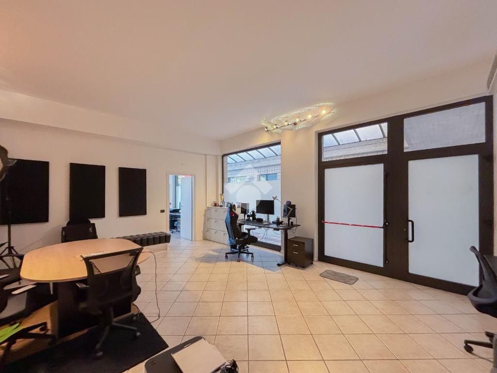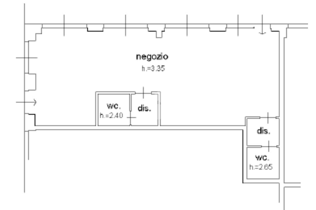 Il negozio misura 100 metri quadrati e attualmente si presenta diviso in due locali di 50 metri quadri l’uno, entrambi completi di un servizio igienico con antibagno. Un servizio igienico è a norma disabili. L’immobile risulta molto luminoso grazie alla posizione ad angolo e alla presenza di cinque grandi vetrine. La soluzione è completa dell’impianto di riscaldamento e di condizionamento ad aria, dell’impianto elettrico e di quello di illuminazione.
