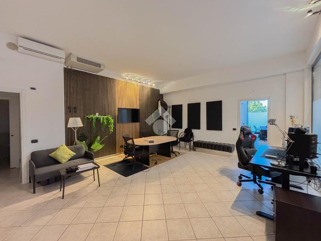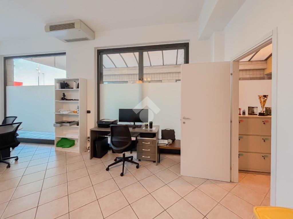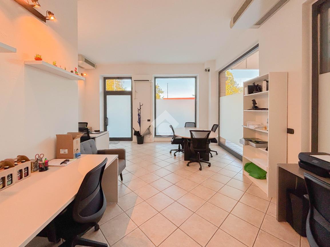 Il complesso commerciale di cui fa parte l’unità proposta si trova a Ponte San Pietro. Esternamente la soluzione è completa di circa settanta parcheggi pubblici.