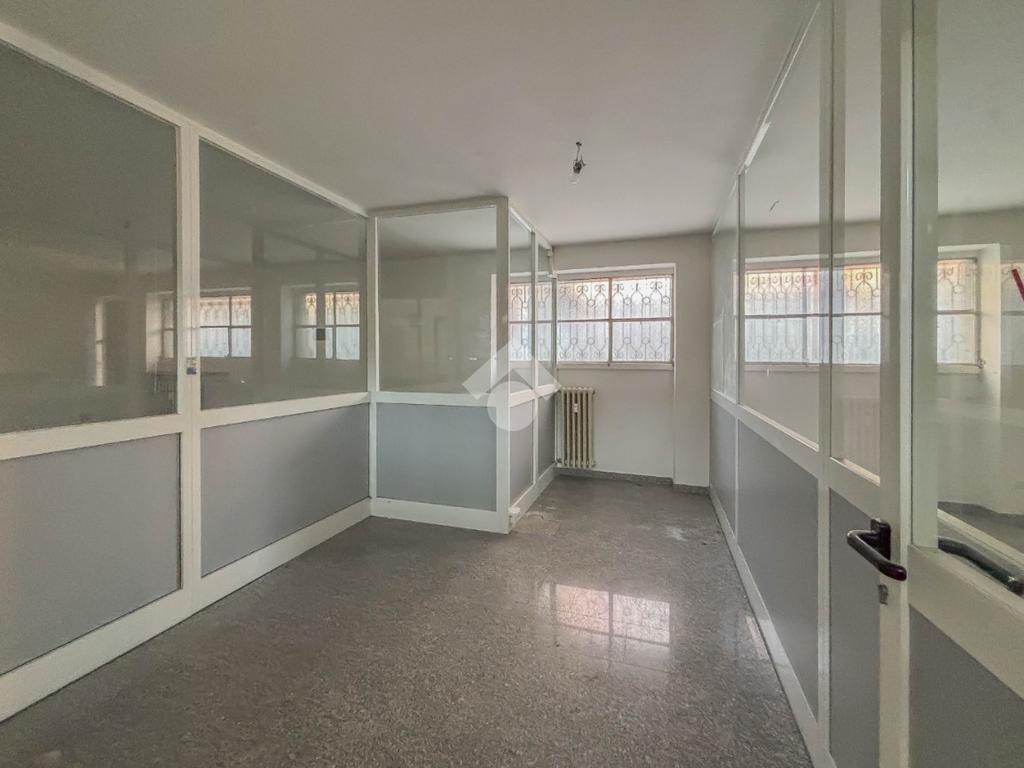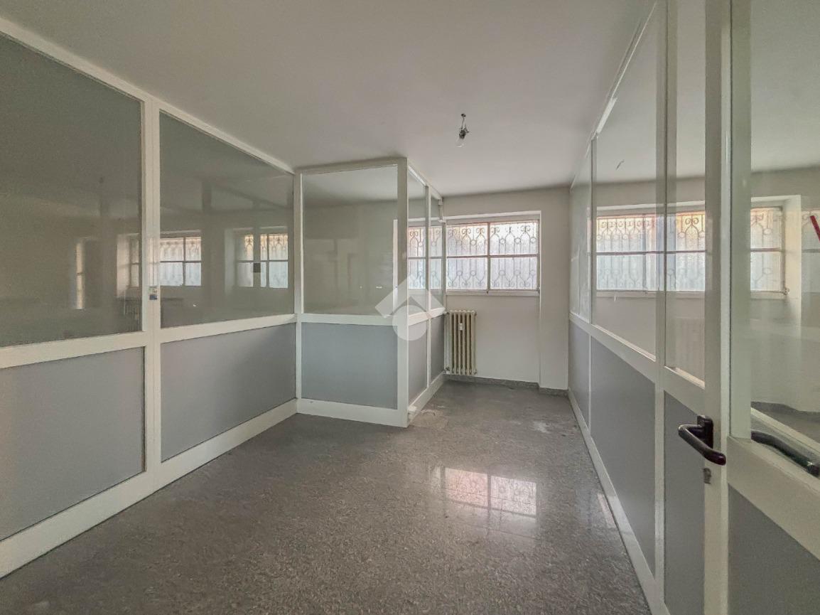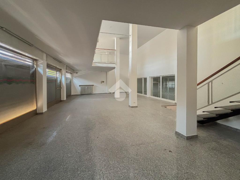 L’ufficio misura 220 metri quadrati e si sviluppa su due piani, rispettivamente piano terra e piano primo, di una palazzina di quattro livelli. La soluzione è attualmente divisa in due locali ed è munita di un servizio igienico a norma disabili con antibagno. L’immobile, cablato, è servito dall’impianto di riscaldamento centralizzato, dall’impianto elettrico e da quello di illuminazione. L'ambiente è luminoso grazie alla presenza di quattro vetrine e risulta accessibile tramite saracinesche automatiche con ingresso a norma disabili.