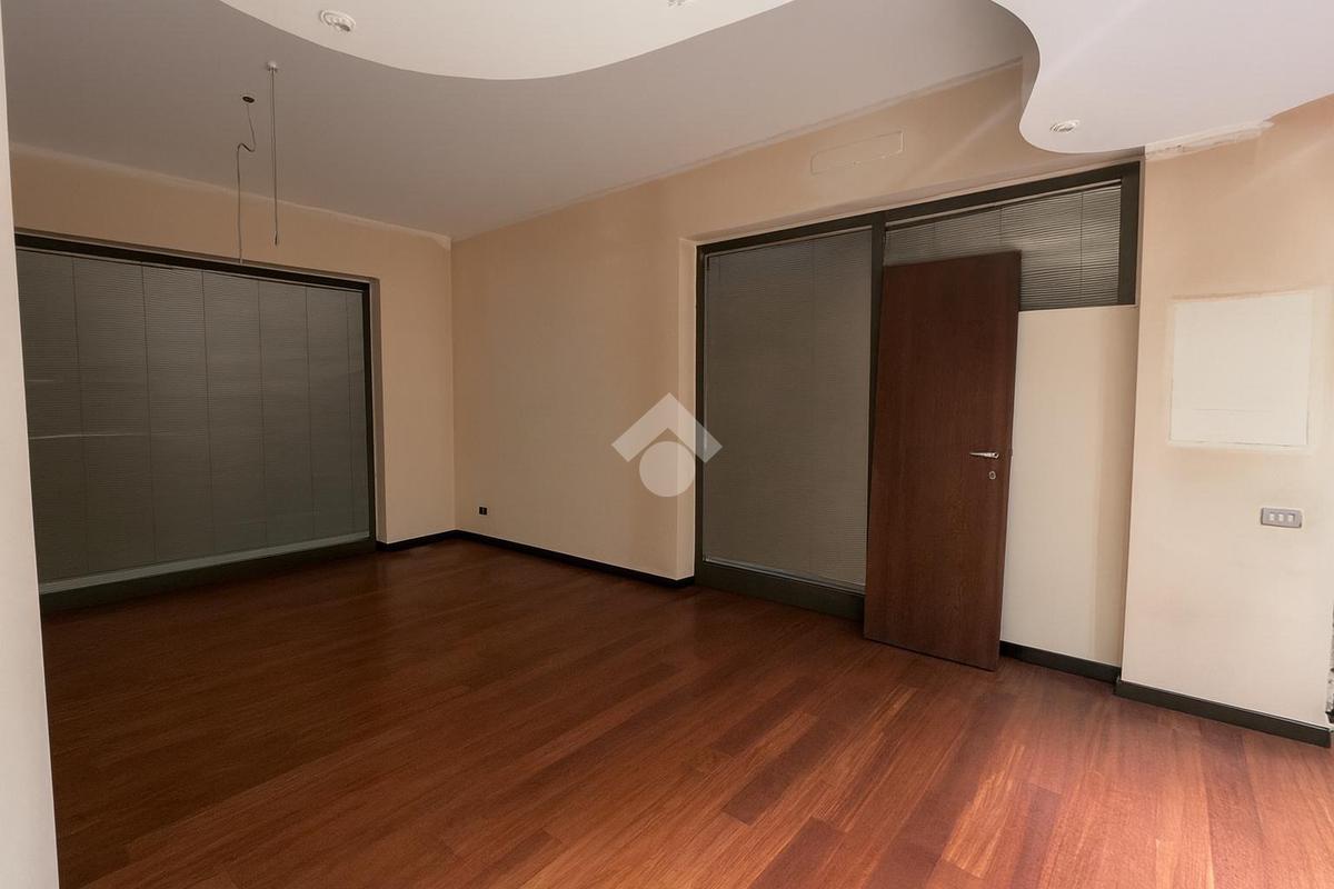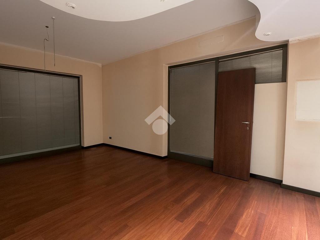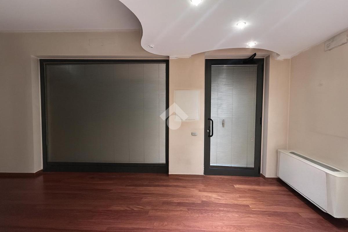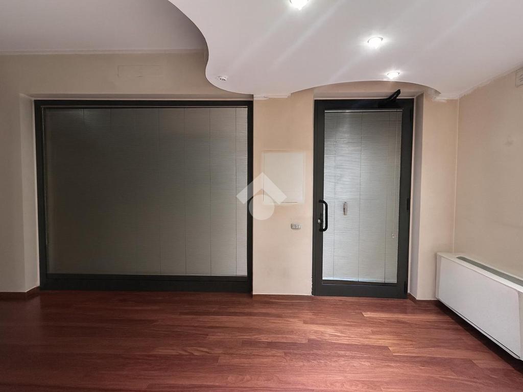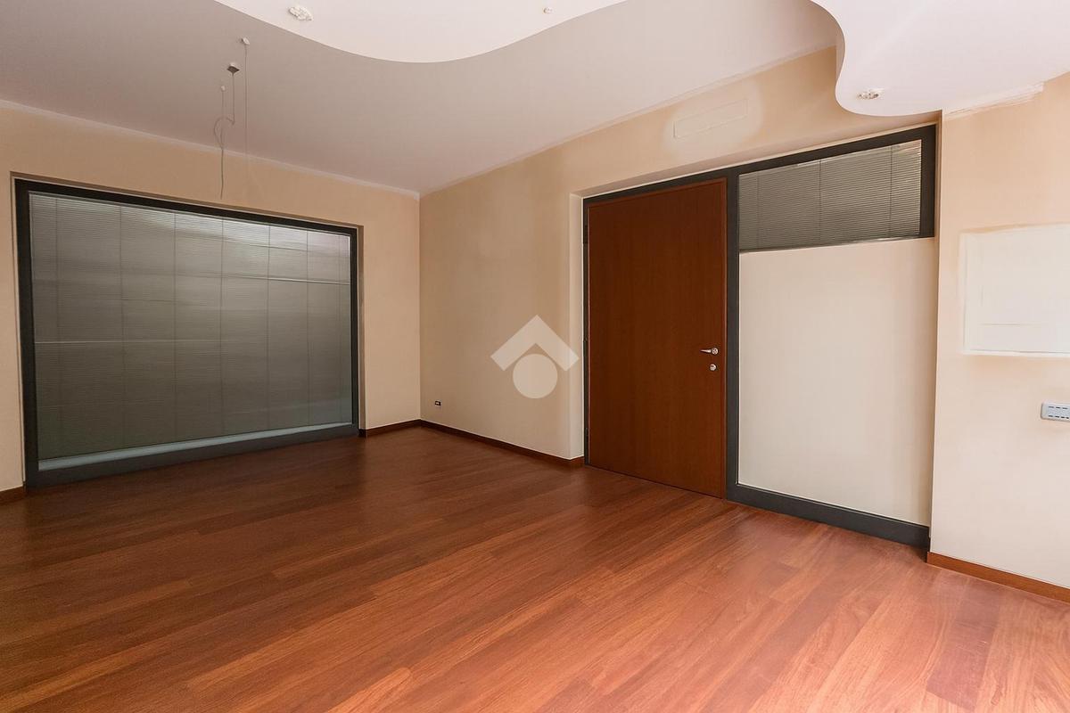 L’ufficio misura complessivamente 120 metri quadrati e si sviluppa su due piani di una palazzina di quattro livelli. Al piano terra, la soluzione è suddivisa in due locali per un totale di circa 70 metri quadrati; il piano seminterrato ospita invece un magazzino di 50 metri quadrati. L’immobile, controsoffittato, dispone di un servizio igienico con antibagno al piano terra e risulta luminoso grazie alla presenza di tre vetrine. La struttura è servita dall’impianto di riscaldamento e condizionamento autonomo, dall’impianto elettrico e da quello di illuminazione. L’ambiente presenta una posizione ad angolo con doppio ingresso a norma disabili.