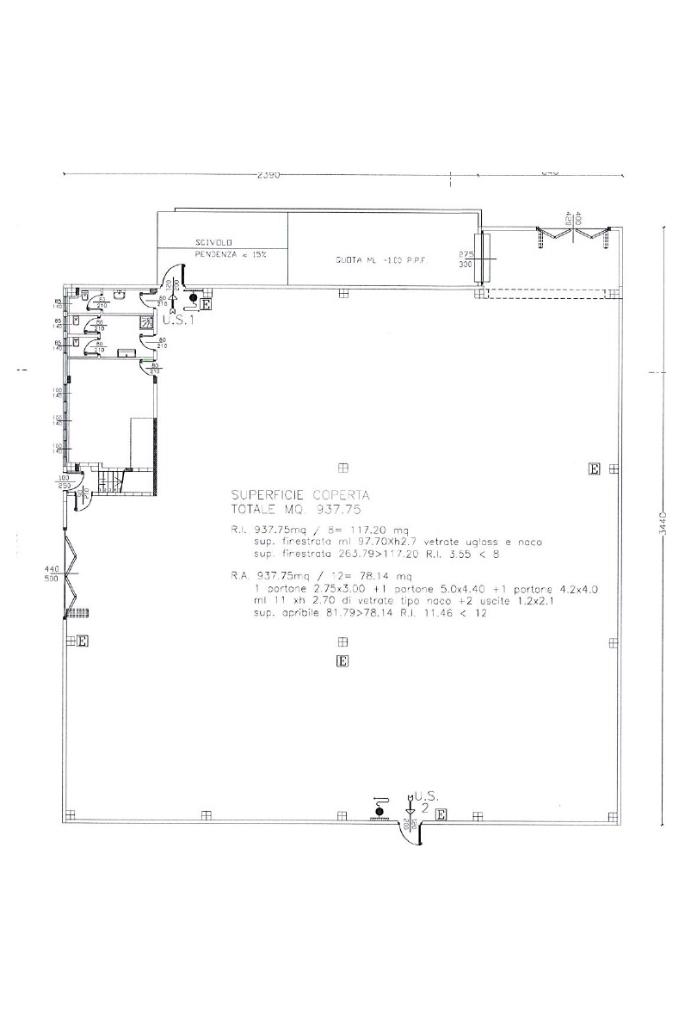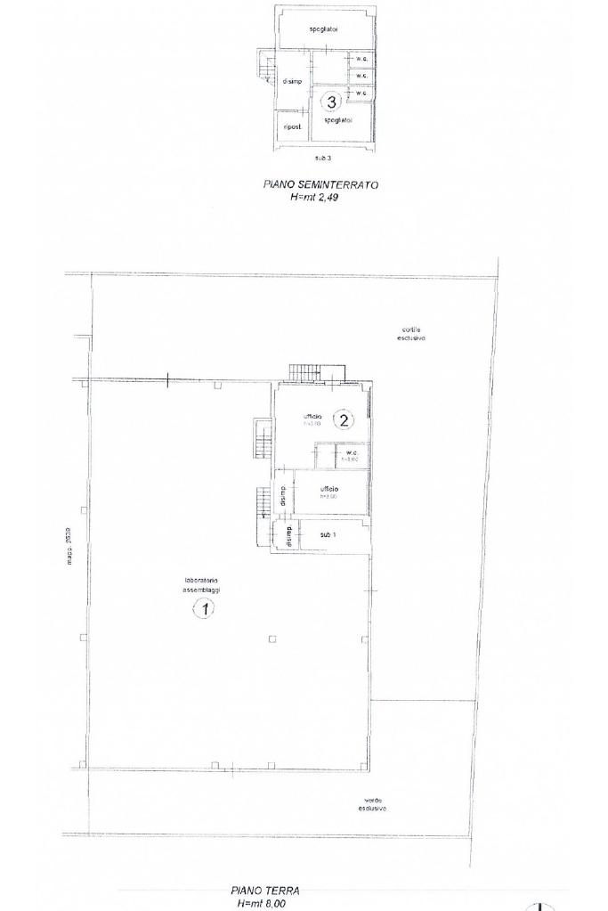 250 metri quadrati di capannone alto 8,50 metri al colmo e 7,30 metri sottotrave;180 metri quadrati di soppalco con altezza di 3,70 metri;180 metri quadrati di capannone (situati sotto il soppalco) alto 4,10 metri;150 metri quadrati di uffici e servizi igienici equamente distribuiti su due piani.