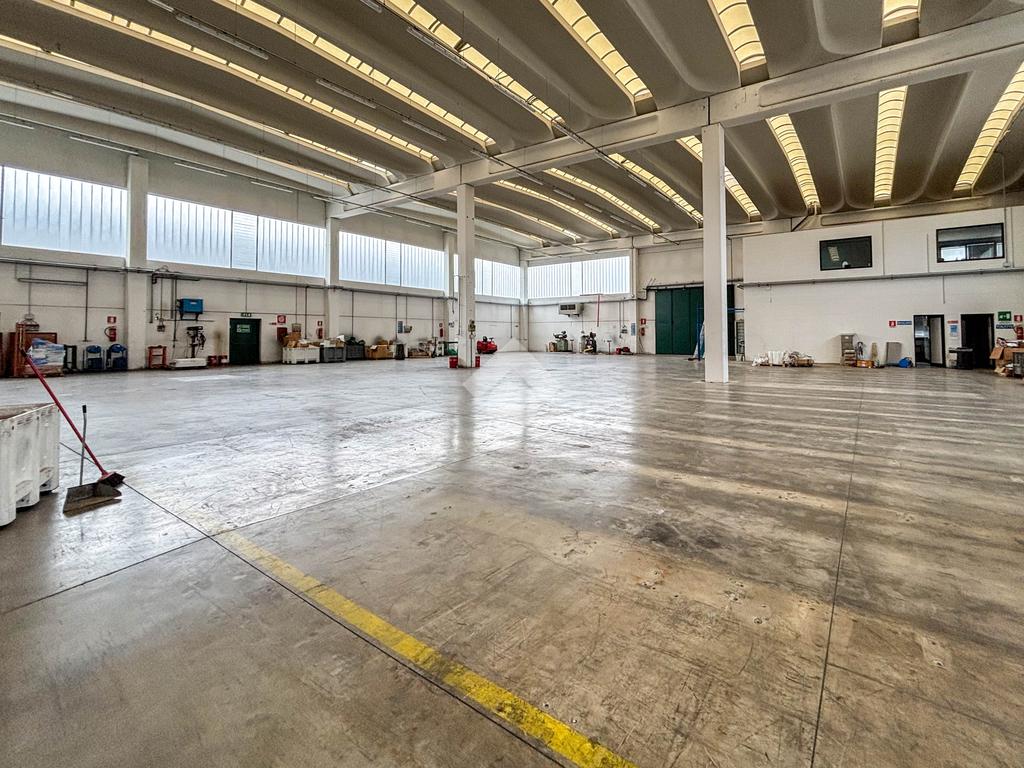 Il capannone proposto in locazione ha una superficie complessiva di circa 1.800 metri quadrati, a cui si aggiungono ulteriori 1.500 metri quadrati di area esterna esclusiva.