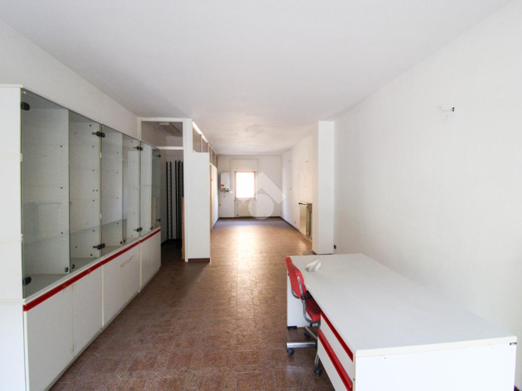 Il negozio misura 55 metri quadrati e si estende al piano terra di una palazzina che si sviluppa su cinque livelli. La soluzione è attualmente divisa in due locali ed è munita di un servizio igienico con antibagno. Il negozio, cablato, è servito dall’impianto di riscaldamento autonomo, dall’impianto elettrico e da quello di illuminazione. L'ambiente è luminoso grazie alla presenza di una vetrina e presenta un ingresso a norma disabili, accessibile tramite saracinesca manuale.