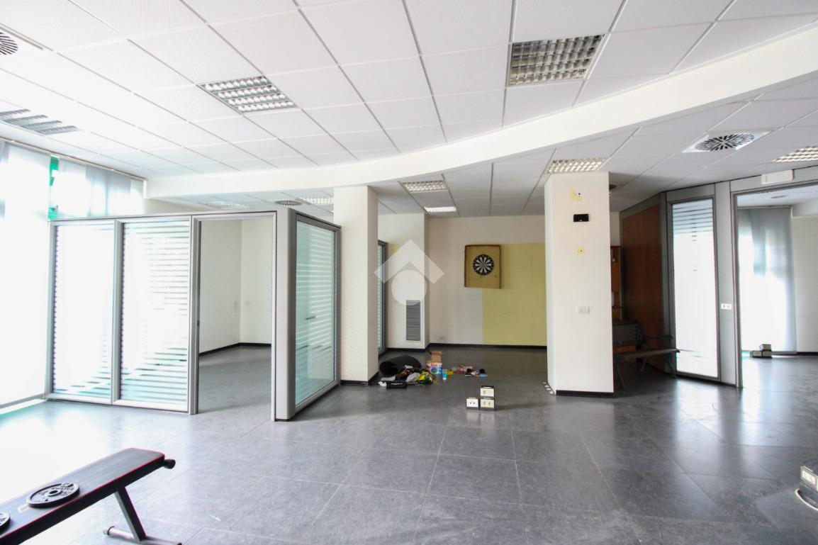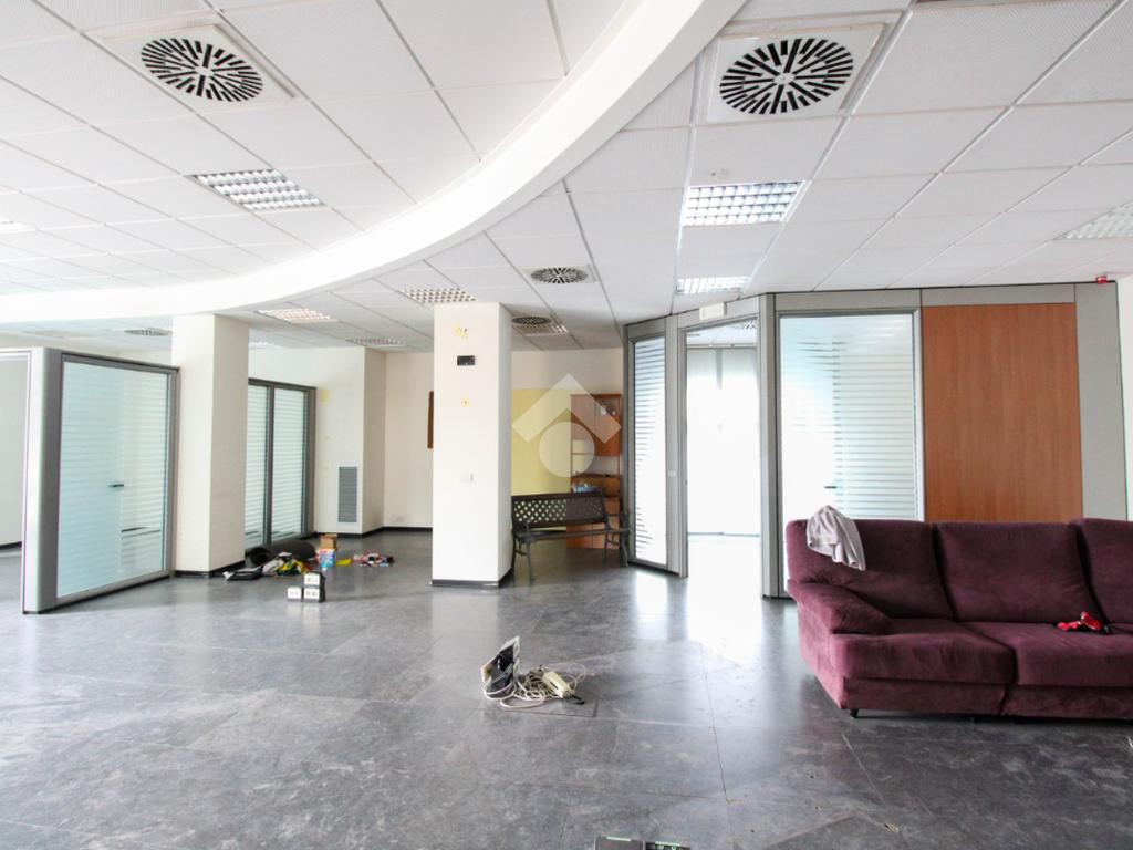 L’ufficio misura 160 metri quadrati ed è situato al piano terra di una palazzina che si sviluppa su due livelli. La soluzione è attualmente divisa in tre locali ed è dotata di due servizi igienici privati con antibagno. Il locale, controsoffittato e cablato, possiede l'impianto di riscaldamento e condizionamento da revisionare, l’impianto elettrico e quello di illuminazione. L’immobile è servito dal controllo degli accessi ed inoltre garantisce l’accesso per persone disabili.