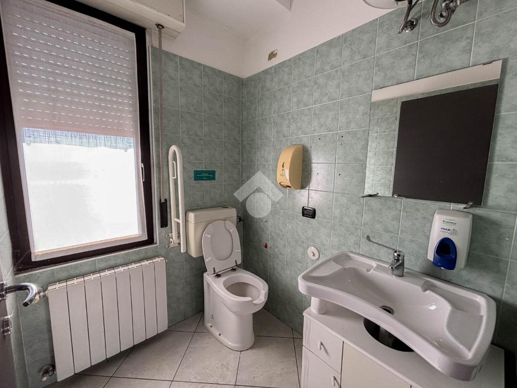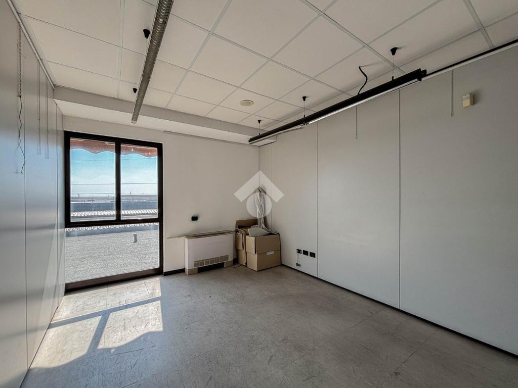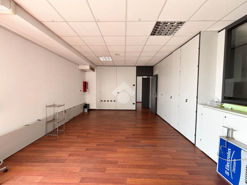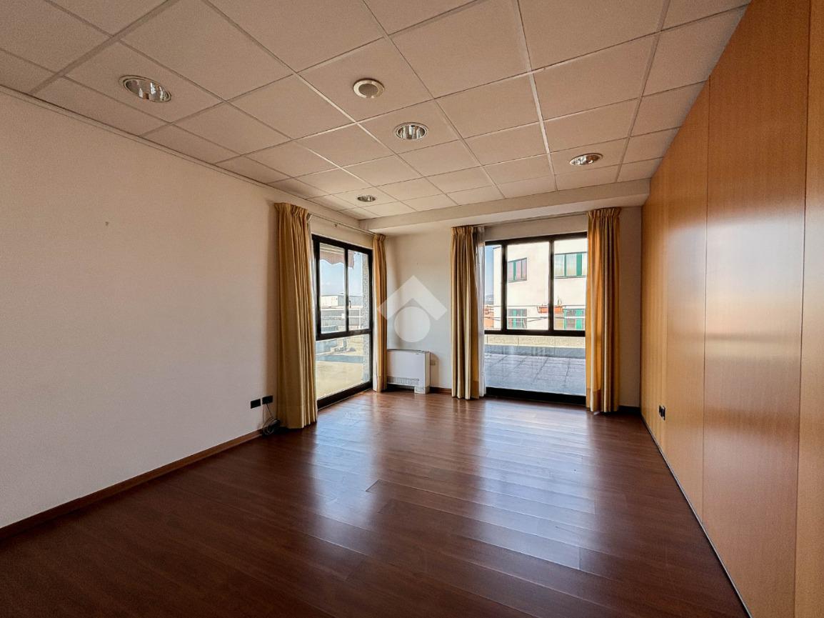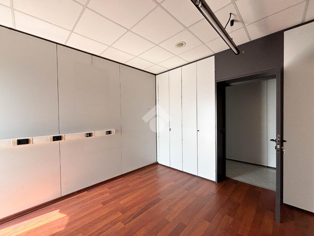 L’ufficio misura circa 620 metri quadrati e si trova al piano secondo di un edificio. La struttura è attualmente suddivisa in vari locali ed è dotata di cinque servizi igienici con antibagno. La soluzione presenta la predisposizione dell’impianto di riscaldamento e condizionamento ad aria, mentre sono presenti l’impianto elettrico, quello di illuminazione e allarme. L’ambiente risulta ben illuminato grazie alla presenza di finestre. L’immobile, completamente controsoffittato, è servito dalla porta blindata, dal sistema di controllo accessi e i rilevatori antincendio con antincendio a pioggia. Inoltre, è cablato e possiede la connessione ad Internet. Il complesso presenta la predisposizione all’ascensore.