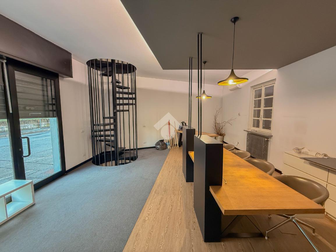 Il negozio misura complessivamente 140 metri quadrati e si sviluppa su più livelli in una palazzina di tre piani. Al piano terra troviamo un open space di circa 45 metri quadrati al quale si collega, tramite una scala a chiocciola, il piano primo che presenta un ulteriore locale di circa 45 metri quadrati. Al piano seminterrato è presente un magazzino di circa 50 metri quadrati, anch’esso collegato internamente, e dotato di servizio igienico finestrato con antibagno. La soluzione, controsoffittata, è servita dall'impianto di riscaldamento e condizionamento centralizzato, dall'impianto elettrico e da quello di illuminazione. L'ambiente, cablato, è luminoso grazie alla presenza di una vetrina e presenta una posizione ad angolo con doppio ingresso a norma disabili, tramite una saracinesca automatica.