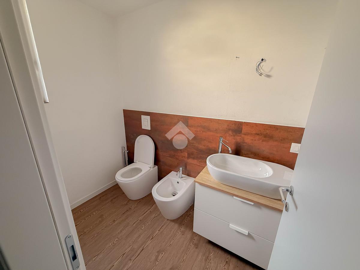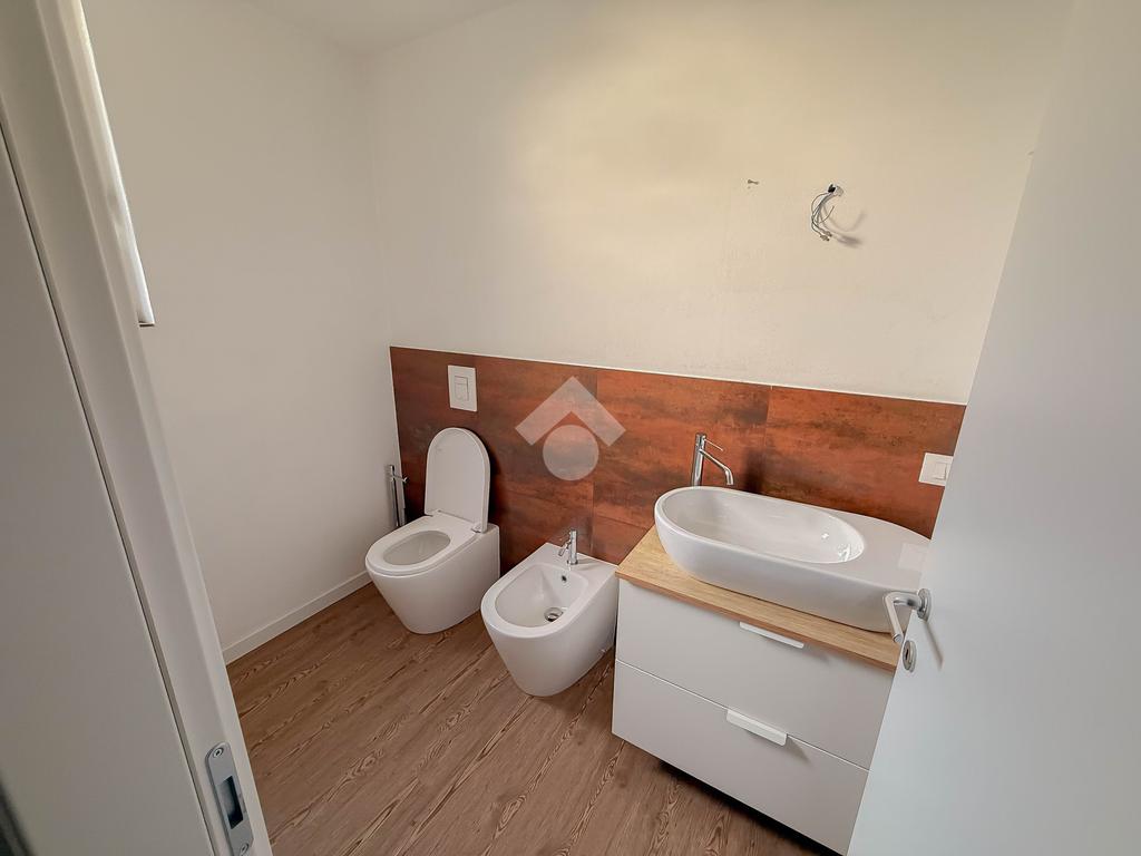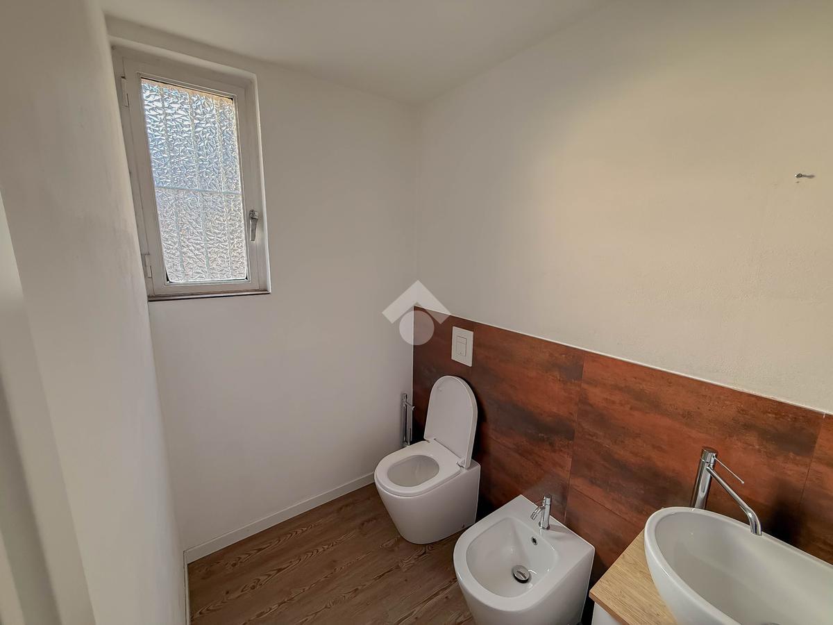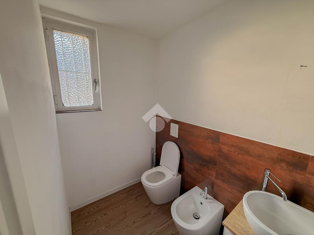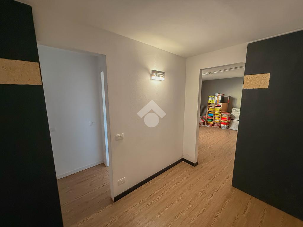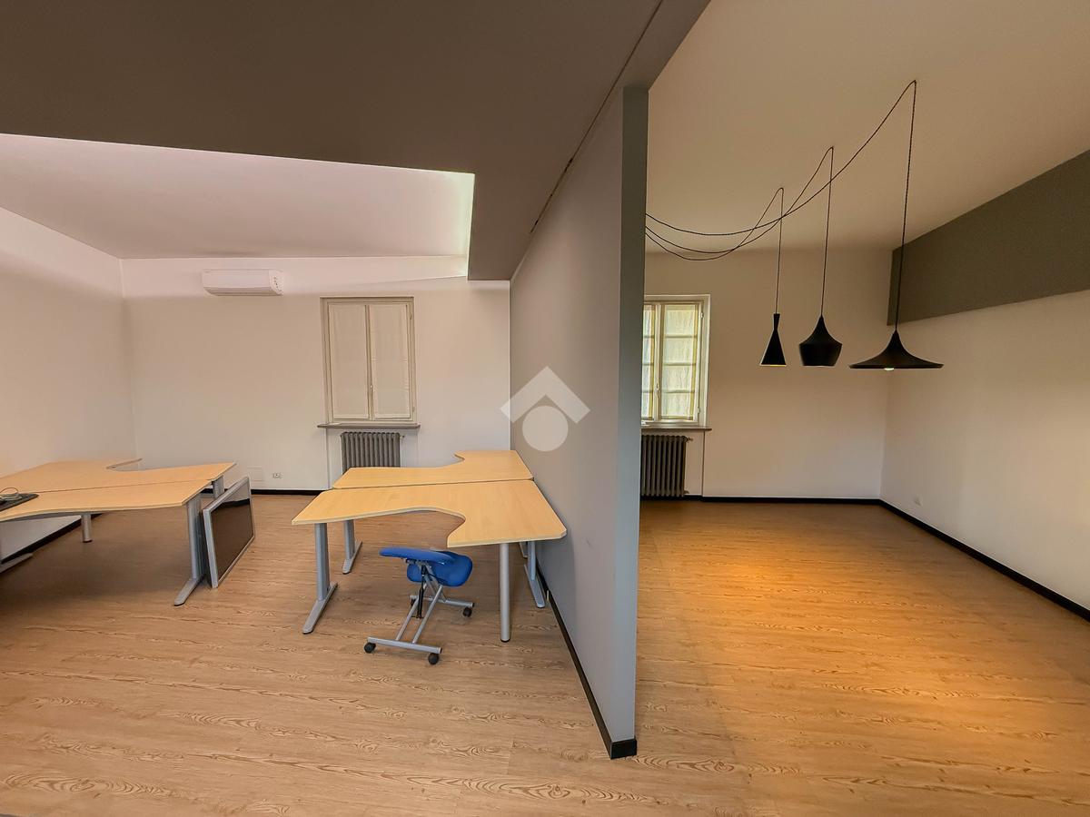L'ufficio misura complessivamente 140 metri quadrati e si sviluppa su più livelli in una palazzina di tre piani. Al piano terra troviamo un open space di circa 45 metri quadrati al quale si collega, tramite una scala a chiocciola, il piano primo che presenta un ulteriore locale di circa 45 metri quadrati. Al piano seminterrato è presente un magazzino di circa 50 metri quadrati, anch'esso collegato internamente, e dotato di servizio igienico finestrato con antibagno. La soluzione, controsoffittata, è servita dall'impianto di riscaldamento e condizionamento centralizzato, dall'impianto elettrico e da quello di illuminazione. L'ambiente, cablato, è luminoso grazie alla presenza di una vetrina e presenta una posizione ad angolo con doppio ingresso a norma disabili, tramite una saracinesca automatica.