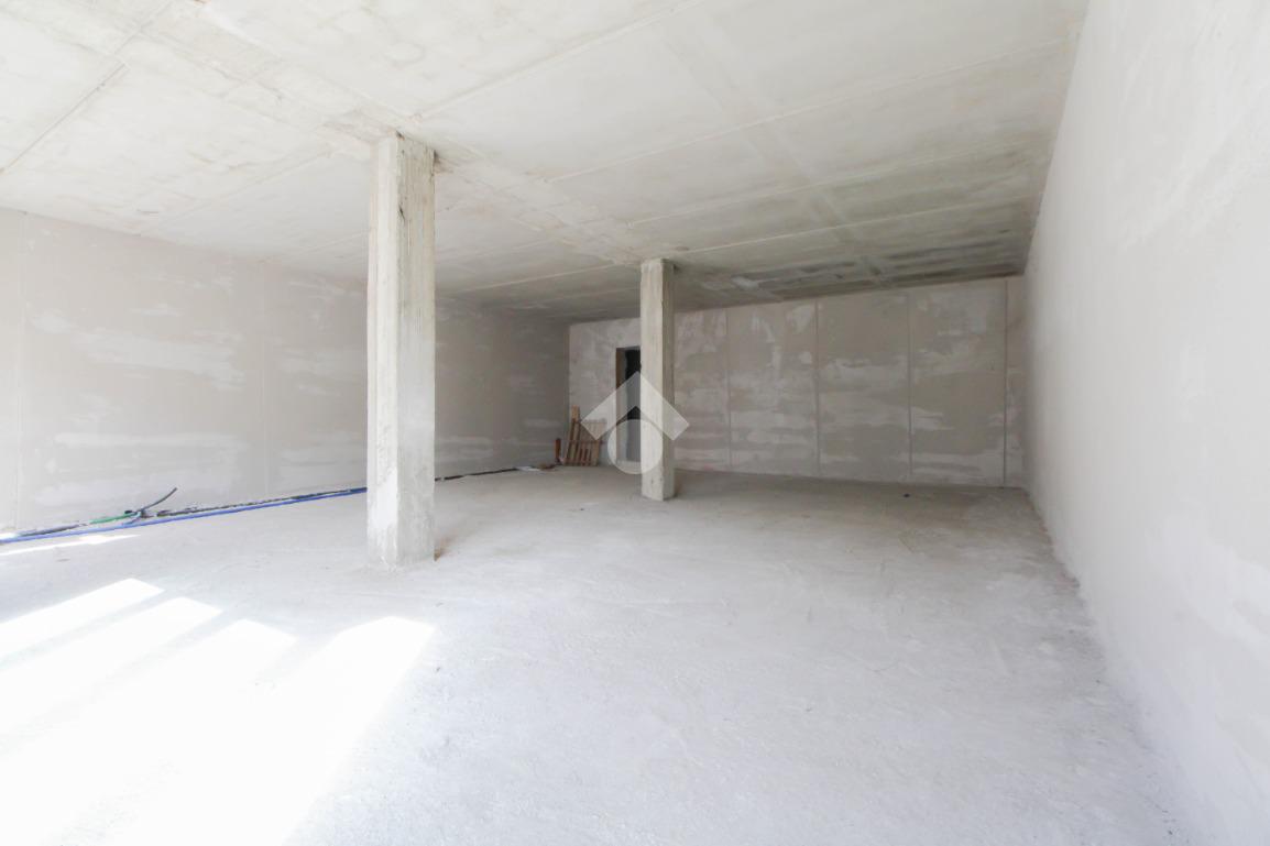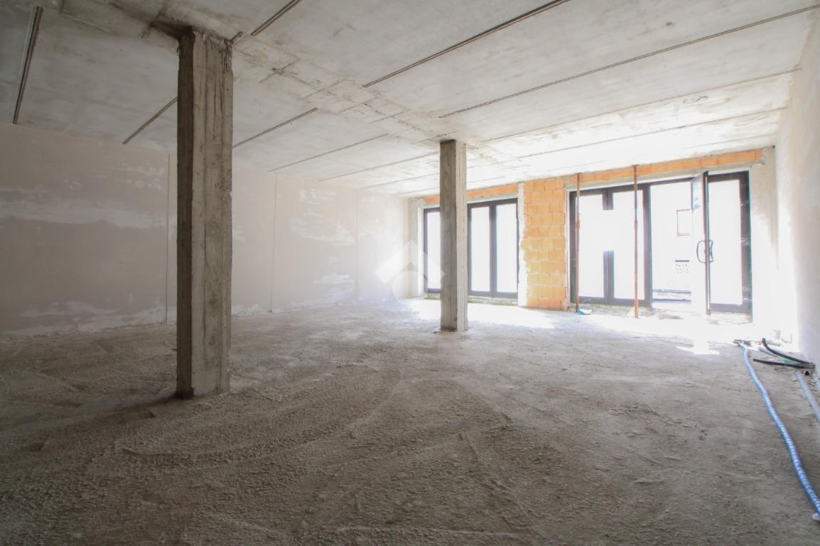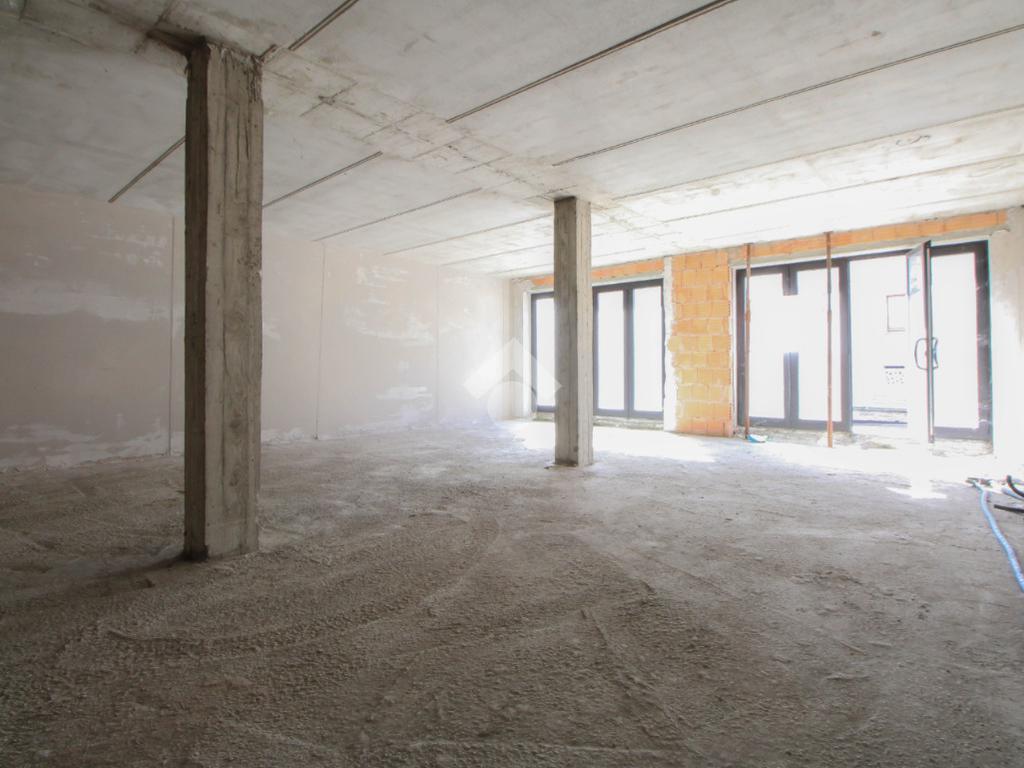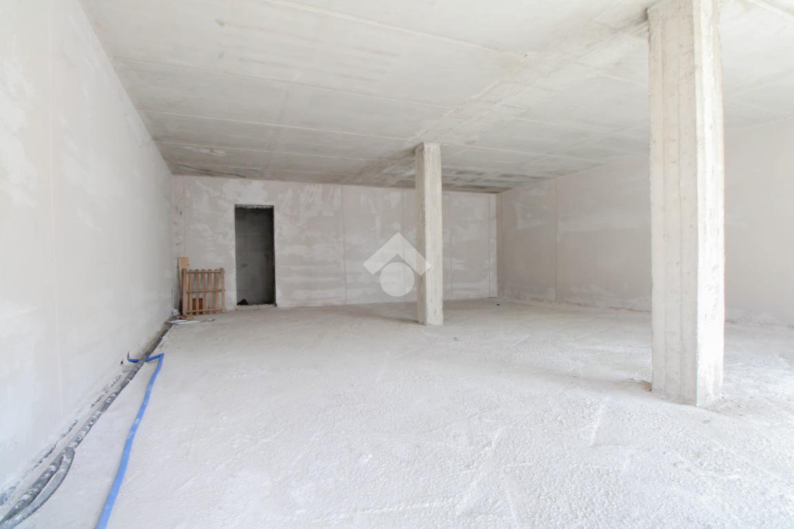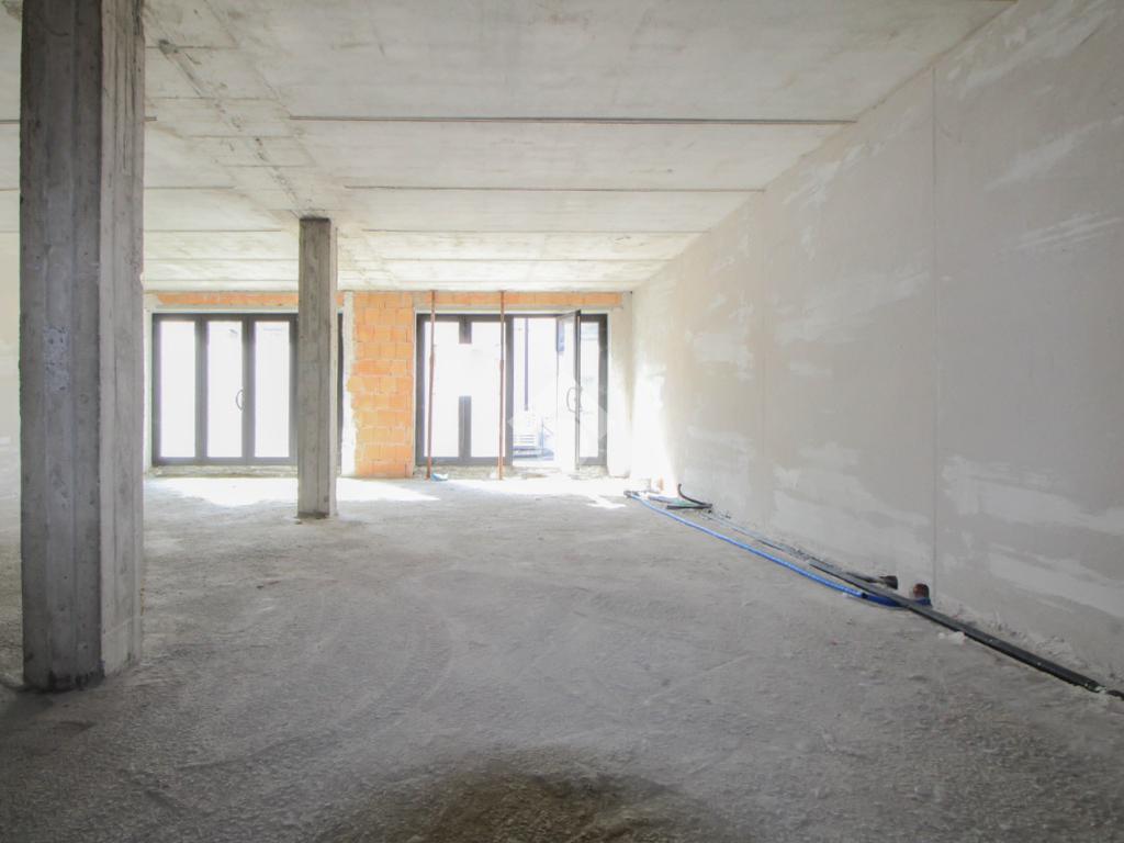 Il negozio misura 75 metri quadrati ed è situato al piano terra di una palazzina che si sviluppa su tre livelli. La soluzione è attualmente un open space allo stato rustico con due pilastri. L’immobile risulta luminoso grazie alla presenza di due vetrine. Il locale è servito dalla canna fumaria e presenta un doppio ingresso a norma disabili.