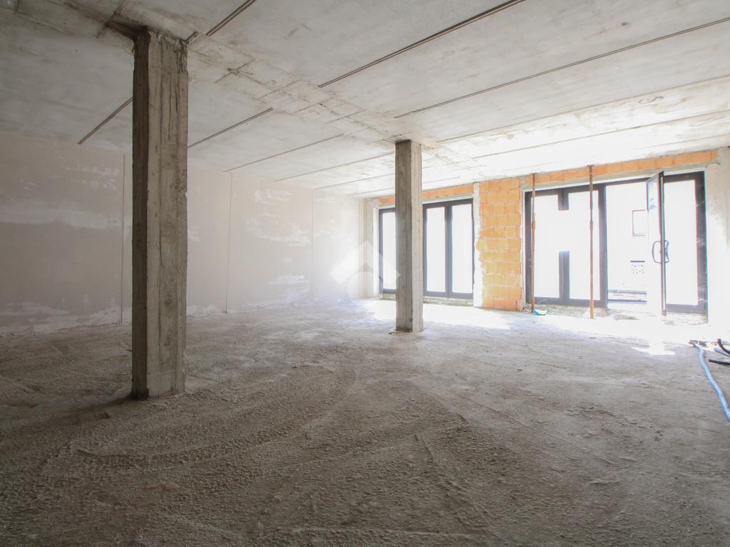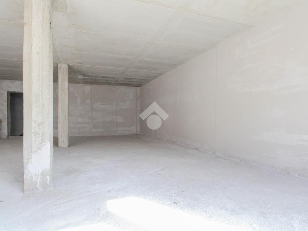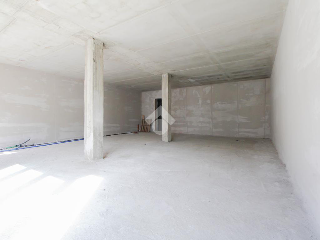 L’ufficio misura 75 metri quadrati ed è situato al piano terra di una palazzina che si sviluppa su tre livelli. La soluzione è attualmente un open space allo stato rustico con due pilastri. L’immobile risulta luminoso grazie alla presenza di due vetrine. Il locale è servito dalla canna fumaria e presenta un doppio ingresso a norma disabili.
