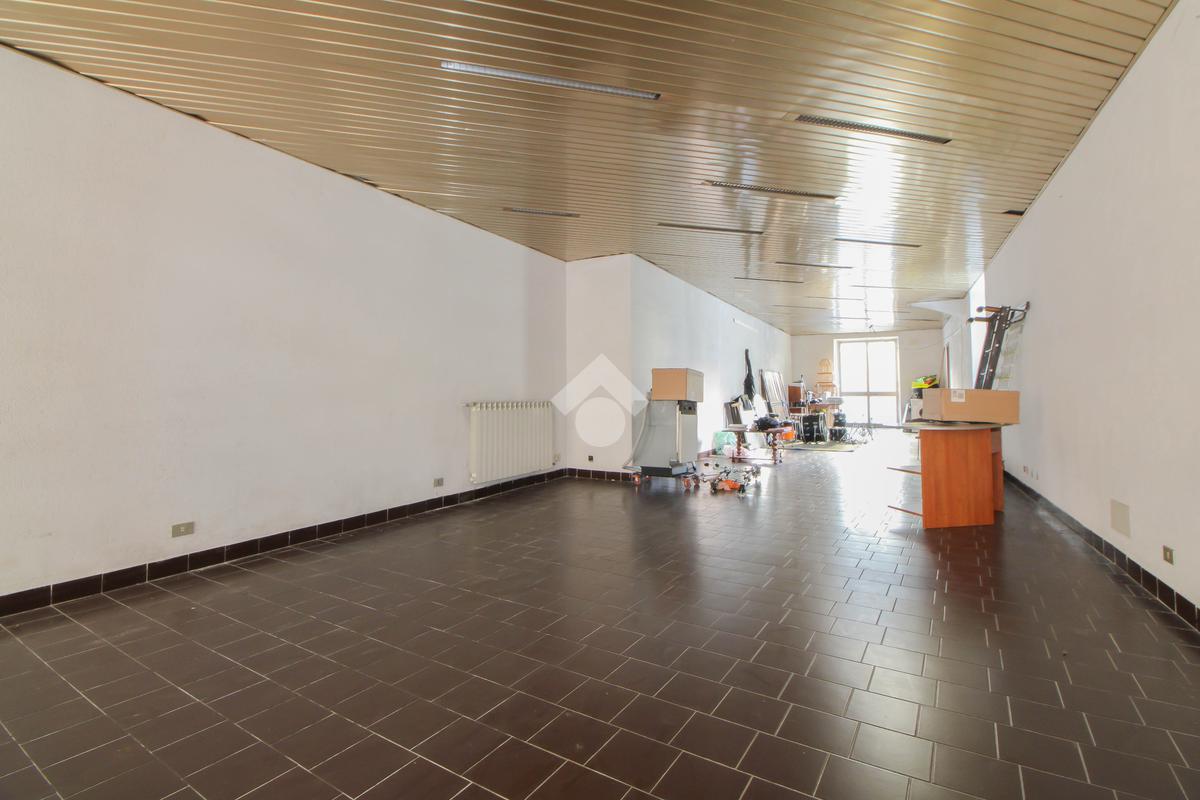 L’ufficio misura 105 metri quadrati e si estende al piano terra di una palazzina che si sviluppa su quattro livelli. La soluzione è attualmente un open space ed è munita di un servizio igienico finestrato con antibagno. L’ufficio è servito dall’impianto elettrico trifase 380 kW e da quello di illuminazione. L'ambiente è luminoso grazie alla presenza di due vetrine. L'immobile, controsoffittato e cablato, presenta un doppio ingresso e prevede la possibilità di installare la canna fumaria.