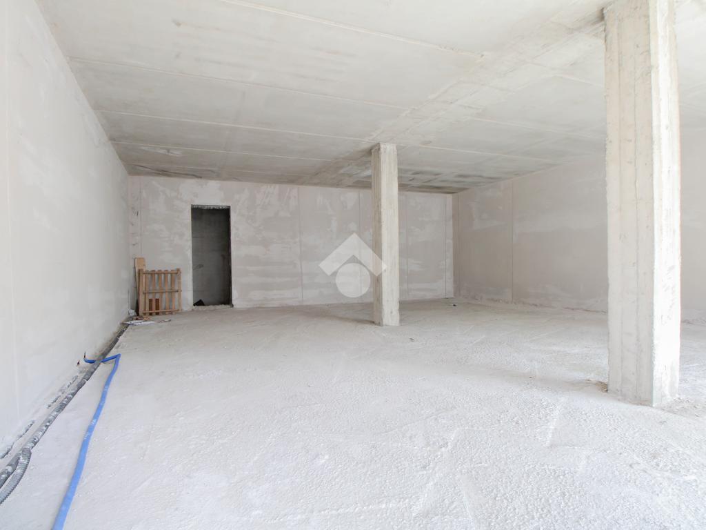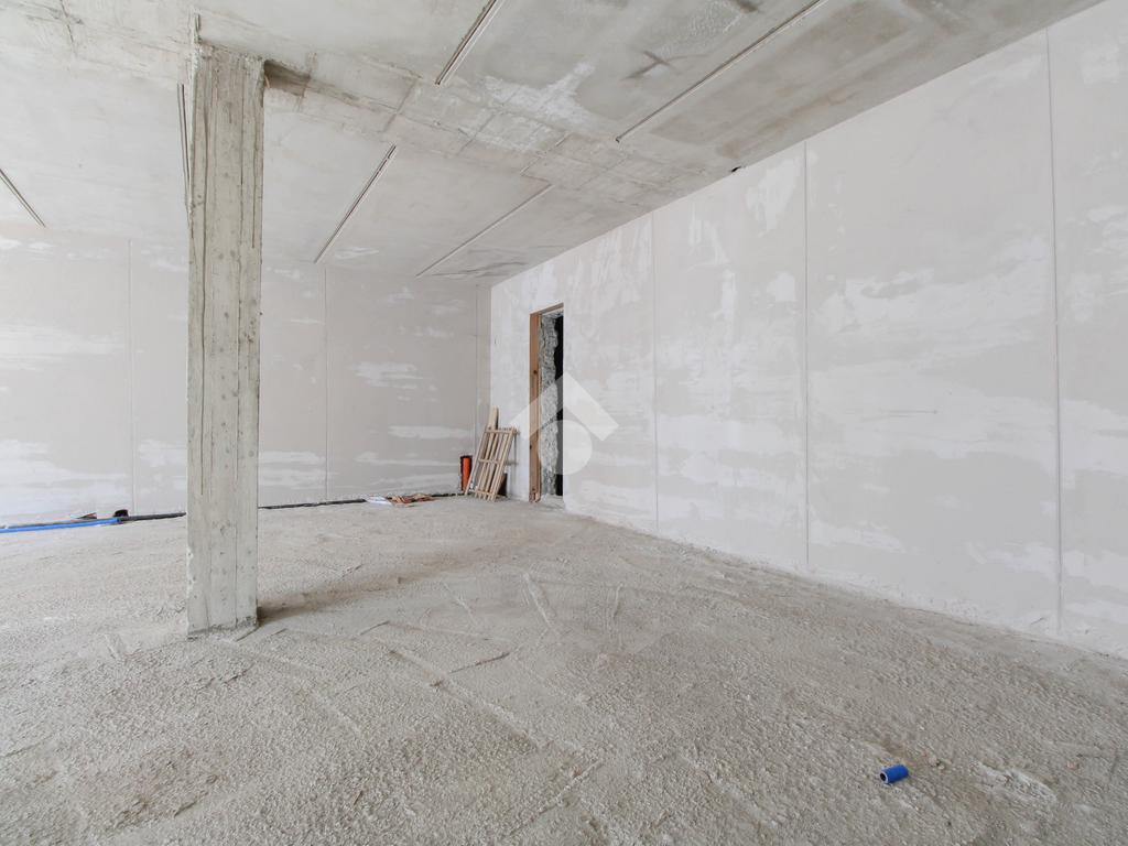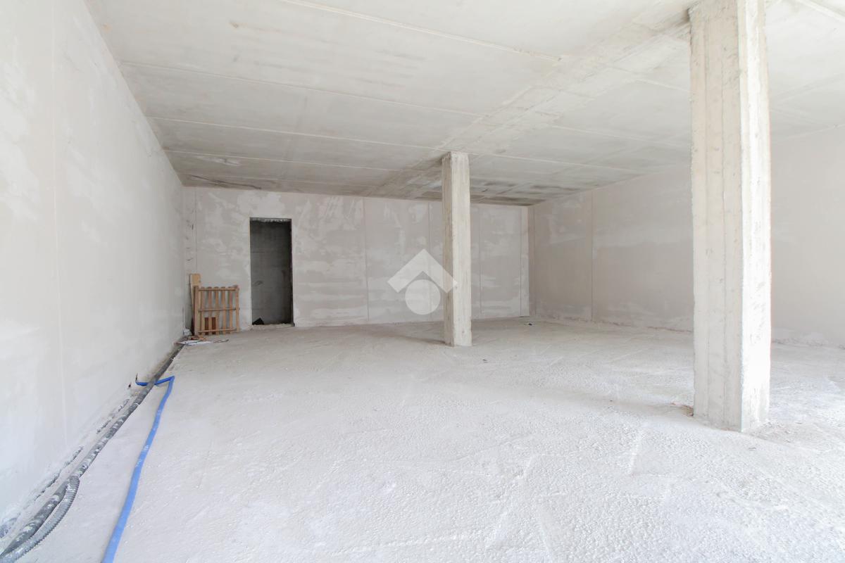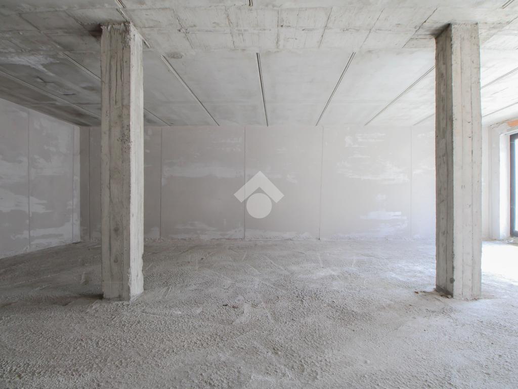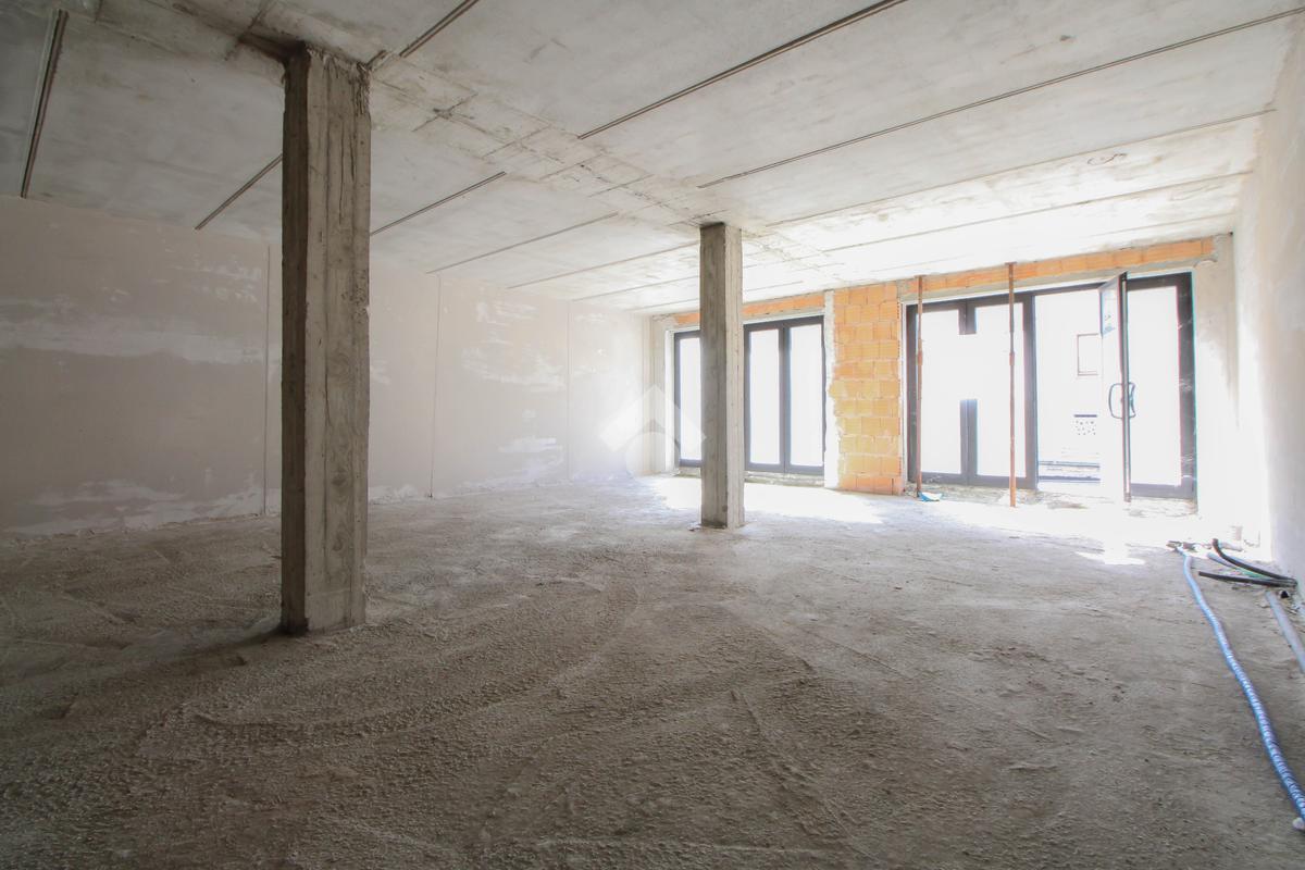 L’ufficio misura 75 metri quadrati ed è situato al piano terra di una palazzina che si sviluppa su tre livelli. La soluzione è attualmente un open space allo stato rustico con due pilastri. L’immobile risulta luminoso grazie alla presenza di due vetrine. Il locale è servito dalla canna fumaria e presenta un doppio ingresso a norma disabili.